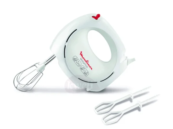 Moulinex 3.5L Quick Mix Hand Mixer HM312127 Quick mix hand mixer with stand bowl covers all your baking needs Effortless and hands-free preparations thanks to the 3.5 Litre auto-rotating stand bowl For more versatility, the mixer is utilizable without its bowl and holder with a set of stainless steel beaters for batters, cakes mixes, whipped egg whites and cream 300 watts of power with 5-speed settings and a turbo function to easily adapt to every recipe Set of stainless steel dough hooks for effortless kneading of pizza or bread dough Number Of Speeds: 5 Power: 300 watts Mixing hooks Whisking hooks Dispense button Dishwasher safe 220-240V-50Hz | #KweliGotYou| Order Moulinex 3.5L Quick Mix Hand Mixer HM311127 - Stainless Steel Stand Bowl, 300 Watts, White, Plastic online and enjoy free delivery across Uganda > Long warranty > Lifetime After-sales Support
