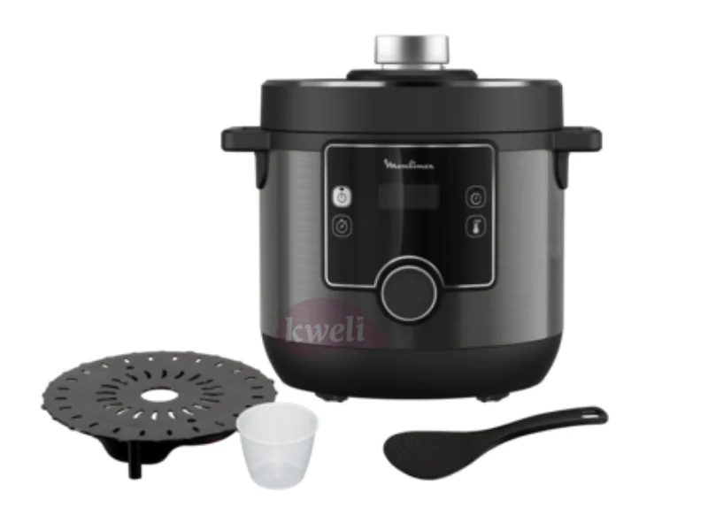 Description TURBO CUISINE Fast Multi-cooker: Easy Express Delicious Cooking Enjoy all your favorite meals in no time! With Moulinex TURBO CUISINE MAXI fast multicooker, expect delicious results up to 3x faster*. Moulinex’s exclusive spherical bowl offers a larger heating surface with optimal heat diffusion to ensure tender and juicy results everyday! Discover crowd-pleasing family meals from starter to dessert—with one appliance that serves as a pressure cooker, steam cooker, soup maker, and more—all at your fingertips and effortless to master with an intuitive single control knob. Choose from 10 automatic cooking programs plus manual control and experience the difference with the easy-to-use multicooker designed to meet all your cooking needs—for one great kitchen essential that replaces at least seven cooking appliances. (*Up to 3X faster cooking compared to traditional cookware using gas or electric stove)