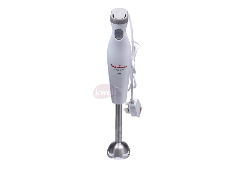 Moulinex Hand Mixer DD451127 Easy-to-use handblender designed for effortless daily use and perfect results; 450W of power for quick and efficient mixing, ideal for a wide variety of recipes Two speed settings (including TURBO setting) to cover any ingredient, with easy-to-use one-button control; Ergonomic handle with textured grip for comfortable use and easy mixing Easy to clean hand blender with dishwasher-safe removable parts Robust and durable design with 2 ZELKROM blades for exceptional results Ergonomic handle with textured grip for comfortable use and easy mixing Anti-splash foot to protect against mess and splatters 450 watts | #KweliGotYou| Order Moulinex Hand Mixer DD451127, Easychef; 800ml Beaker, 450 Watts, White online and enjoy free delivery across Uganda > Long warranty > Lifetime After-sales Support