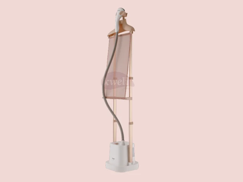 Panasonic Garment Steamer NIGWE080WTH 1,800W 4-level steam adjustment for various clothes 50 seconds quick start-up Unique thick 3D-shaped hanger, retaining the original shape of the garment Fabric board for the stability of ironing 2.0L detachable water tank Lightweight 170g steamer head Adjustable steam settings at hand A telescopic double pole for height adjustment enables easy storage Steam amount: max. 50g/min Accessories: Hanger with fabric board Colour: White | #KweliGotYou| Order Panasonic Garment Steamer NIGWE080WTH; 2140W, 2L Tank, Ironing Board online and enjoy free delivery across Uganda > Long warranty > Lifetime After-sales Support