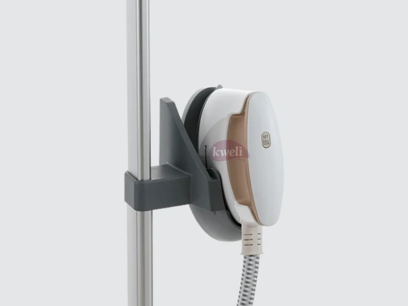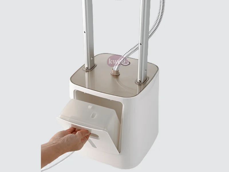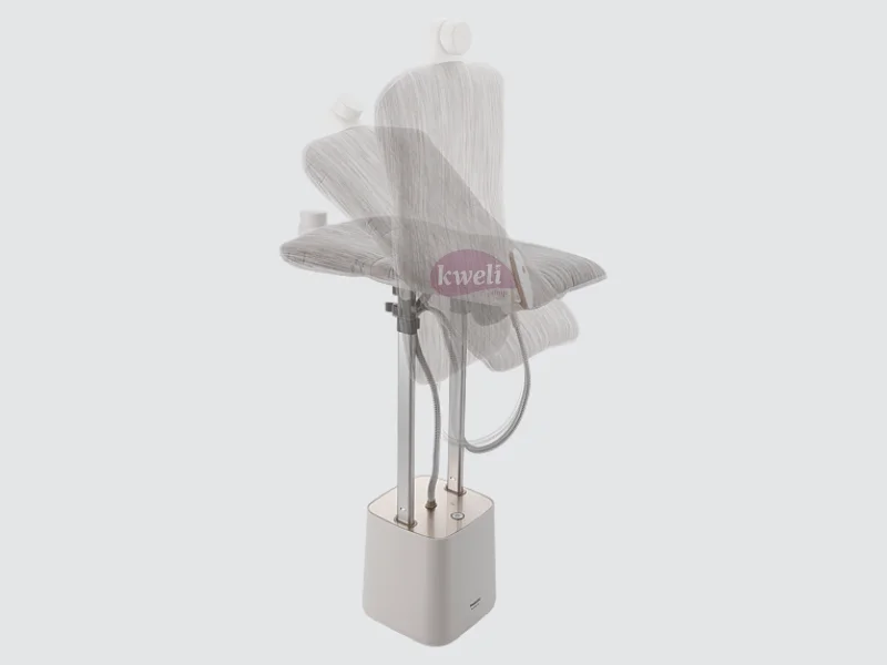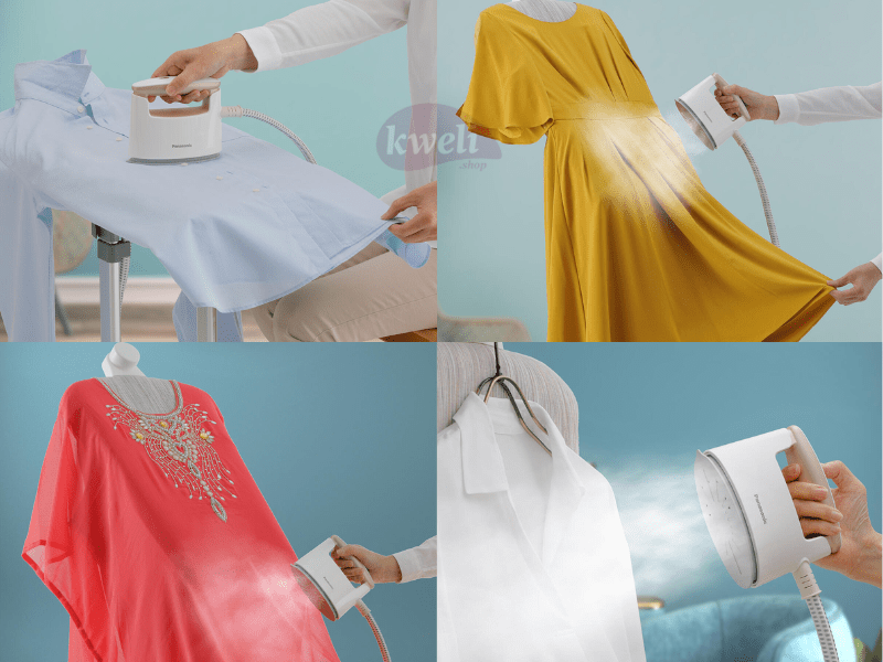 Panasonic Garment Steamer NIGWF150WTH Remove tough wrinkles with powerful steam generated from 2400W Twin Boilers. Free Angle Adjustment to suit your ironing and steaming style Matching your height and clothes with Onetouch Height Setting Fine finishing with Ceramic Soleplate Water Tank Capacity:1.6 Litres Power Cord Length:1.5 m ... years FREE warranty | #KweliGotYou| Order Panasonic Garment Steamer NIGWF150WTH; 2400W online and enjoy free delivery across Uganda > Long warranty > Lifetime After-sales Support