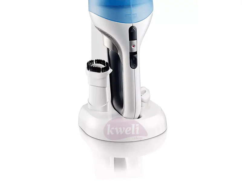 Philips MiniVac Handheld vacuum cleaner FC6142 4.8V battery Bagless Cyclonic Crevice, brush tool, squeegee Wet & dry Slim charging base (for wall or table) 2-stage bagless cyclonic airflow for optimal filtration Aerodynamic nozzle design for a better dust pick-up Looped handle ensure optimum grip One-step click-off nozzle for easy emptying Powerful 3.6 V NiMH batteries | #KweliGotYou| Order Philips MiniVac Handheld vacuum cleaner FC6142; 56 watts, 1.4kg, Wet and dry system online and enjoy free delivery across Uganda > Long warranty > Lifetime After-sales Support