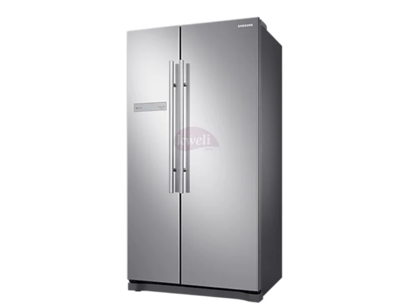 Samsung 540-litre Side-by-side Refrigerator RS54N3A13S8 Gross/Total capacity: 566 litres Net Capacity: 540 litres Net Height with Hinge (cm): 178.9 Net Depth with Door Handle (cm): 73.4 Net Weight: 98kg Twin Cooling System No Frost Technology (Frost-free) Multi-flow System All Around Cooling Tempered Glass shelves 5 Shelves Wine Rack Dairy Compartment 4 Door Pockets Egg Container (Egg Tray) Icemaker Tray Ice Tray Door Alarm Refrigerant: R600a Cyclopentane Insulation Compressor: Digital Inverter Compressor Energy Efficiency Class: A+ Interior LED Light Warranty | #KweliGotYou| Order Samsung 540-litre Side-by-side Refrigerator RS54N3A13S8; All-round Cooling, Frost-free, Digital Inverter Compressor online and enjoy free delivery across Uganda > Long warranty > Lifetime After-sales Support