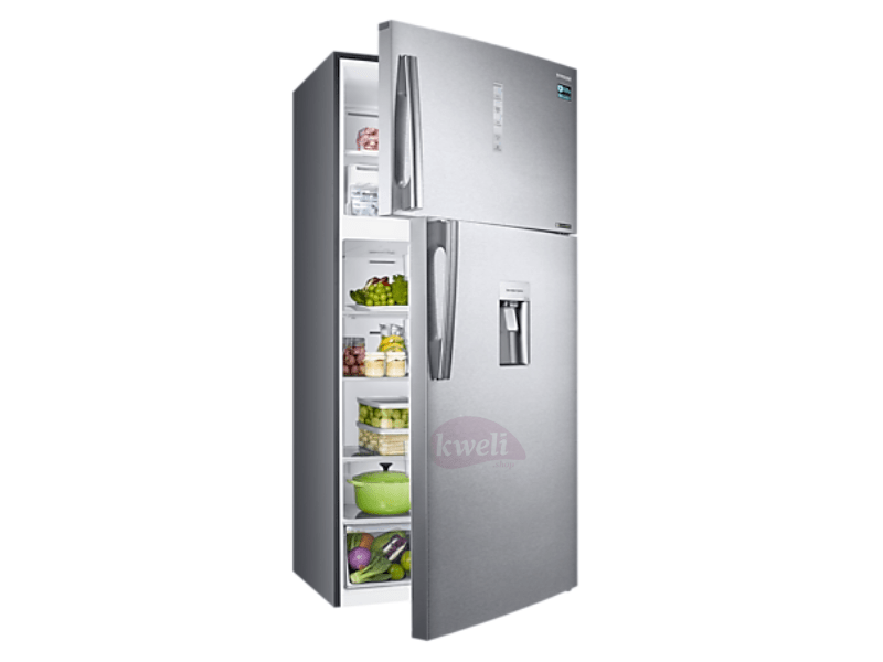 Samsung 618-litre Refrigerator RT62K7110SL Double Door Refrigerator Water Dispenser Top Mount Freezer Frost-free freezer Twin Cooling Plus Multi-Flow Tempered Glass Shelves 4 Shelves Number of Vegetable & Fruit Drawers (half) 4 Door Pockets Egg Container (Egg Tray) Interior LED Light: Top LED Big Guards: Yes Ice Maker: Twist Digital inverter compressor Refrigerant: R-600a Energy Efficiency Class: A+ 1 year Samsung warranty | #KweliGotYou| Order Samsung 618-litre Refrigerator RT62K7110SL; Double Door, Top Freezer, Twin Cooling, Inverter, Frost-free online and enjoy free delivery across Uganda > Long warranty > Lifetime After-sales Support