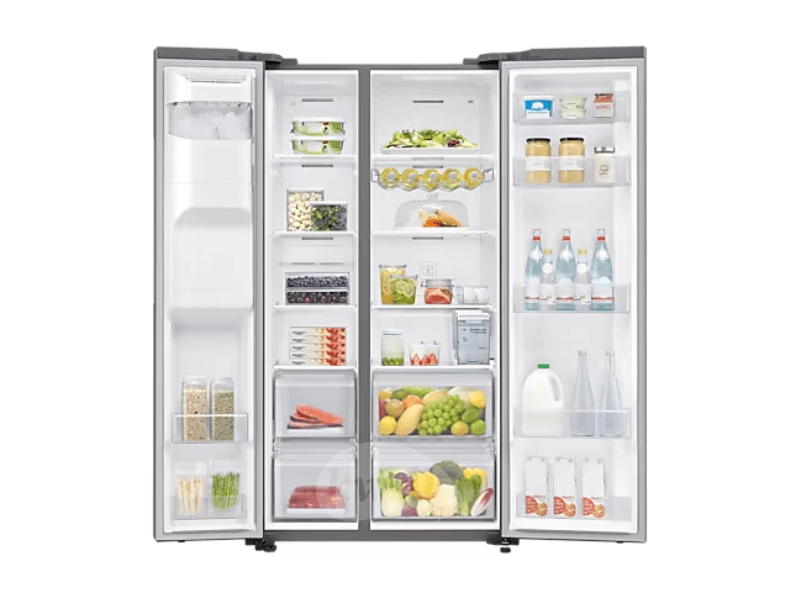 Description Samsung 635-litre Side By Side Refrigerator More fresh space inside, More seamless style outside SpaceMax™ Technology Store more food with a very spacious 617 liter* interior. Its unique SpaceMax™ technology enables the walls to be much thinner as it uses a minimal amount of high-efficiency insulation. So it creates more storage space without increasing the external dimensions or compromising energy efficiency.