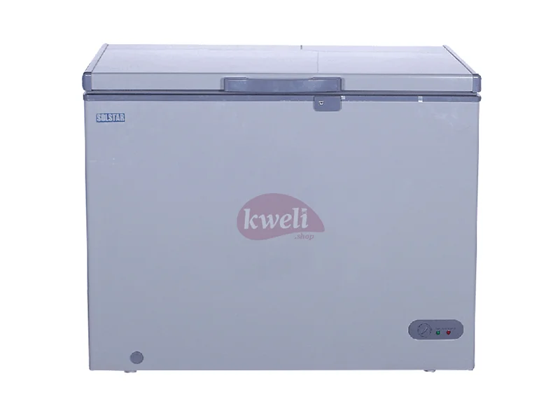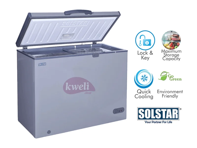 Solstar 350 liter Chest Freezer CF350-SGLBSS Gross capacity: 350 litres Net capacity: 235 litres Compressor cooling Coolant type R134a CFC Free 2 Baskets Sliding Glass Door, Lock and Key External Handle With Integrated Lock 2 wheels + 2 Feet | #KweliGotYou| Order Solstar 350 liter Chest Freezer CF350-SGLBSS, Sliding Glass Door, Lock and Key online and enjoy free delivery across Uganda > Long warranty > Lifetime After-sales Support