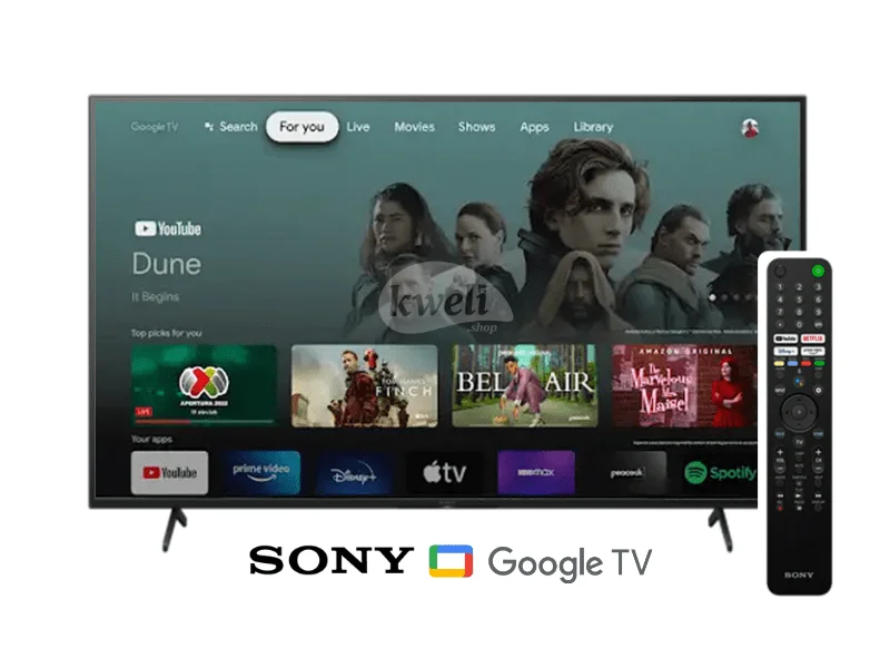 Sony 55 inch 4K Android Smart Google TV Diagonal width 55 inch Google TV™ Remote Control with voice 4K High Dynamic Range resolution 1-year Sony Warranty | #KweliGotYou| Order Sony 55 inch 4K Android Smart Google TV KD55X80J; Remote with Voice Control online and enjoy free delivery across Uganda > Long warranty > Lifetime After-sales Support