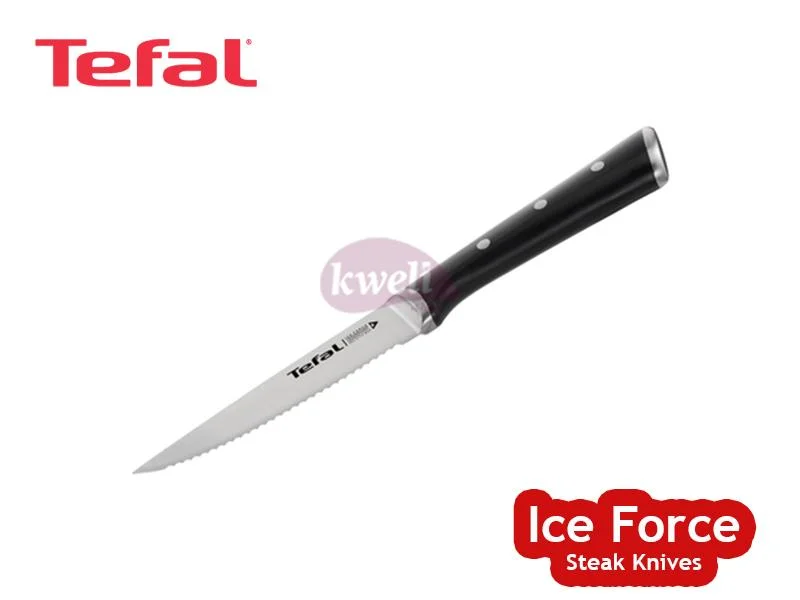 Experience up to 2x longer lasting performance with Ice Force knives * Thanks to Ice Force technology, Ice Force knives provide the optimal cutting experience. The blades are cooled by a cryogenic process at -120 ° C for a perfect finish, added strength and better resistance to corrosion. A must-have knife collection for all your cutting needs from slicing to dicing to chopping | #KweliGotYou| Order TEFAL Ice Force Set of 4 Stainless Steel Steak Knives - K232S414 online and enjoy free delivery across Uganda > Long warranty > Lifetime After-sales Support