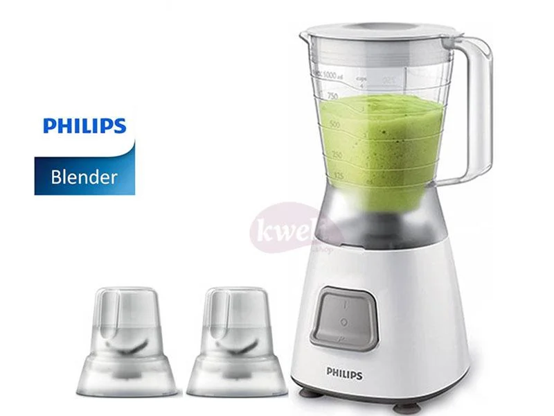 Philips Juice Blender HR2058 Working capacity of juicer jar: 1.25 liters Included: Jar and Mill Break-resistant p lastic jar Material Blade: Stainless Steel Number Of Speed Settings: 1 Dishwasher Safe Integrated Cord Storage Non-Slip Feet, Pulse Plastic Jar 4 Stars Blade With Mill Strong 450 watt motor for fine results 4 stars stainless steel blade 1 Speed & pulse for both soft and hard 2-year warranty