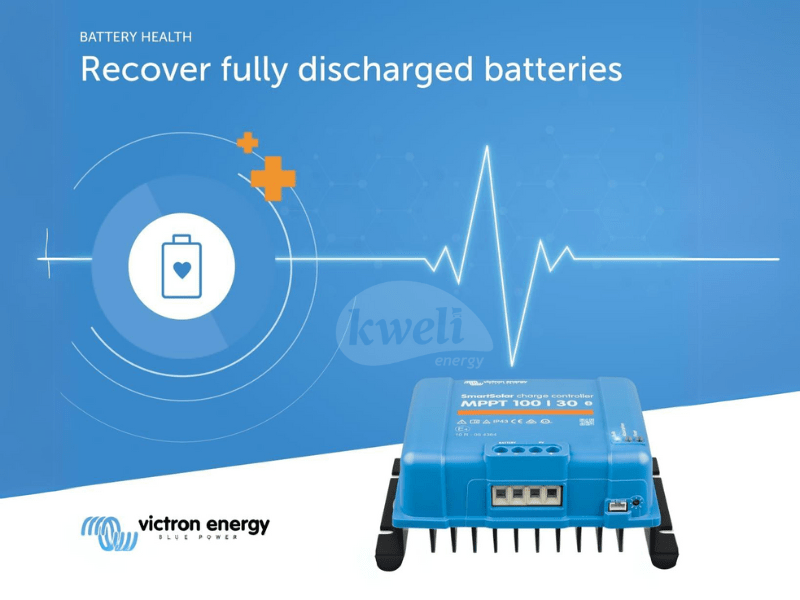 Victron SmartSolar Charge Controller MPPT 100/30 Rated Charge Current: 30 A, Maximum PV Open Circuit Voltage: 100 V Ultra-fast MPPT: Improves energy harvest by up to 30% compared to PWM controllers. Advanced MPPT Detection: Maximises energy harvest even in partial shading conditions. High Efficiency: Features an outstanding conversion efficiency of over 98% without the need for a cooling fan. Flexible Charge Algorithm: Fully programmable with multiple pre-set algorithms. Extensive Protection: Includes over-temperature, PV short circuit, PV reverse polarity, and reverse current protection. Bluetooth Smart Built-in: Allows for wireless setup, monitoring, updates, and synchronisation. VE.Direct Port: For wired connections to various devices. Battery Recovery Function: Can initiate charging for batteries discharged to zero volts and reconnect to fully discharged Li-ion batteries.
