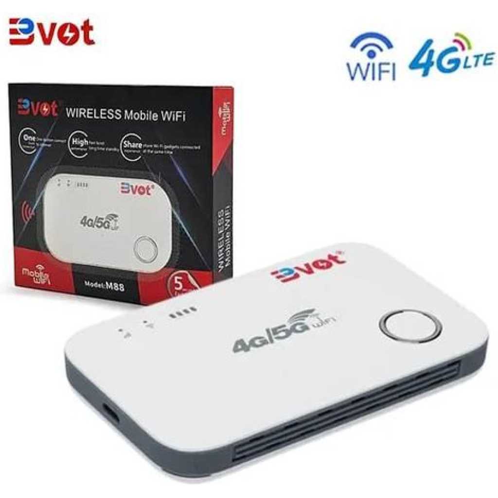 Portable WiFi Router BVOT M88 Unlocked Pocket Router Buy Portable WiFi Router BVOT M88 Unlocked Pocket Router in Sri Lanka. Portable WiFi router that offers convenience and flexibility for all your internet needs. With its compact size and lightweight design, you can easily carry it with you wherever you go. This portable WiFi router is unlocked, which means you can use it with any SIM card from different service providers. This gives you the freedom to choose the best data plan that suits your needs and budget. Simply insert your SIM card into the BVOT M88 and enjoy fast and reliable internet connectivity wherever you are. It supports high-speed 4G LTE connections, ensuring fast and stable internet access for all your devices. Additionally, this pocket router allows you to connect multiple devices simultaneously, making it perfect for sharing the internet with your family, friends, or colleagues. Product Specifications : Able to connect with tablets, laptops, notebooks, and different types of Wi-Fi devices Supported frequency: 2.4GHz Data transfer speed: 150 Mbps Support for 4G/5G LTE mobile phone standard Irancell, Rightel, Shuttle, and Mobile First SIM card support Internal battery: 1500mAh Battery charging time is 5 hours Compatible with Windows, Mac, android, and ios operating systems