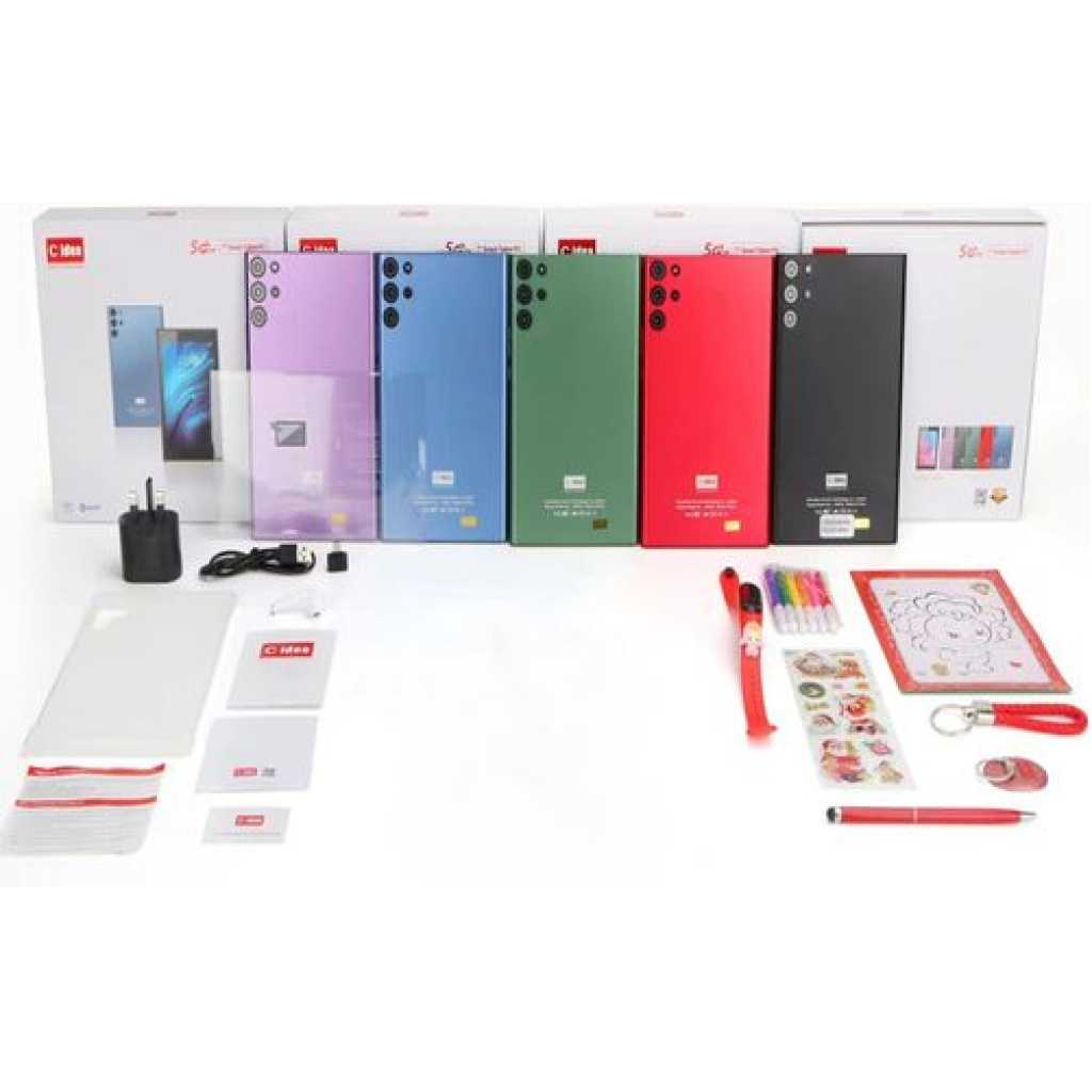 Description: The C idea CM522 is a budget friendly tablet that will fit nicely in anyone’s arms. It features a 7” WVGA IPS LCD screen, 3GB Ram with 32GB ROM and a 5,000mAh battery. It has a TF card slot which allows you to expand the memory with up to an additional 32GB. The C idea CM522 features with a 2MP front camera and 5MP rear camera and is powered by an MTK Quad Core processor. Item : 7” Smart Tablet PC Brand: C idea Model : CM522 Specification: Display : 7” WVGA Capacitive IPS Touch Screen LCD 1080p Full HD Operating System : Android 6.1 Network : 5G-LTE CPU: MTK Chipset : Quad-Core Flash+Ram : 32GB+3GB Expandable Memory : Up to 32GB Sim Type : 5G Single-Sim Battery capacity : 5000mAh Camera : Front – 2MP Back – 5MP Flash Light: Yes Wi-Fi Support : Yes Bluetooth Connect : Yes Face Unlock : Yes Charging Method : Micro USB Power Input : 5V/2A Size : 11.5X19X1(cm) Package Content: Android Tablet*1, UK Charger*1, Micro USB cable*1,OTG*1, Kids Watch*1,Pen*1,Bluetooth Headset*1,Colour pen*6,Random Cartoon stickers*1,Sand painting*1,Key Ring*1,Finger Buckle*1 User Manual*1