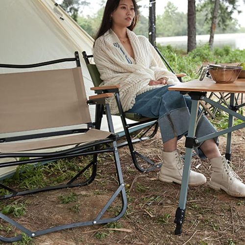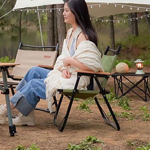 Key Features: Simple structure, small size, light weight and easy to carry Folding camping chair, small, lightweight and easy to carry; The table top is made of high-density polyester Oxford fabric, which is waterproof, wear-resistant and easy to clean The backrest is modelled on the physiological curvature of the human back, providing more comfort when sitting. The armrests are made of rubber wood, it feels particularly comfortable, antique and natural.