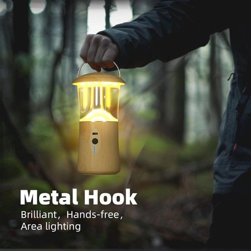 【Durable and Portable】This camping lantern is made of high quality ABS and stainless steel, which is very durable. Portable hook design and high quality metal handle make it easy to carry and hang. This small camping light measures only 6.3 x 4 x 2.7 inches and weighs 0.66 pounds. 【Dimmable & 3 Lighting Modes】 The camping lanterns have three modes: white light (6000K), warm light (2500K) and warm white light (4000K), each with 4 adjustable brightness levels (100% → 70% → 30% → 5%). You can adjust the brightness of our camping lights by long pressing the switch button. Or short press the switch button to change the color temperature. 【Long Battery Life & Emergency Use】 The camping lamp has a built-in 1200mAh large capacity rechargeable battery and Type-C interface, and it only takes about 3 hours to fully charge. The battery lasts up to 3 days in low light mode and 2 hours in maximum brightness mode. 【IPX4 Water Resistant】IPX4 protection levels (Type-C interface avoids contact with water). Our camp tent lights are also used as indoor decorative lights, night lights, as a useful aid while working, studying or reading a book just before bedtime! Perfect gift for the people you love. 【Portable and Versatile】Portable and durable, very convenient and space-saving, can be easily stored in your backpack and start your journey at any time. It is a great choice for camping, fishing, outdoor activities, hiking, reading, indoor use, etc. 【Super Bright 360°】 The camping lantern is equipped with an energy-efficient LED bulb, 360° irradiation without dead angle. When camping, in the event of a power outage or emergency, the camping light provides enough brightness for use. Warm light and warm white light can easily create a sense of warm atmosphere, allowing you to relax well. It can also be used as a bedside lamp for the bedroom.