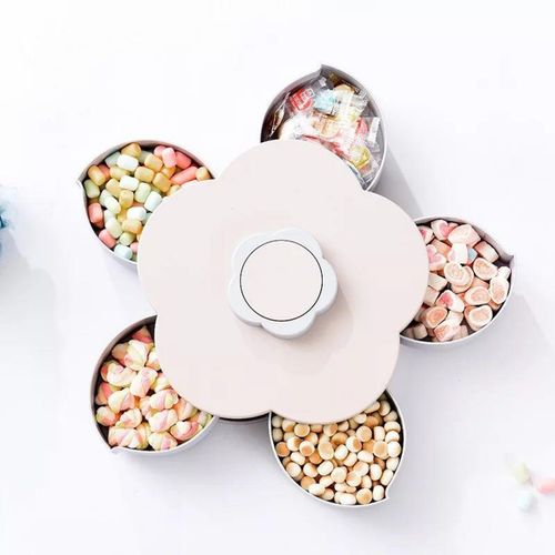 Key Features: Candy Box Serving Rotating Tray Storage With Mobile Phone Stand. Creative flower candy box plum blossom rotating fruit bowl. Has a mobile phone holder dried fruit box. Made with healthy ABS material, non-toxic and environmental protection. Five kinds of candies, nuts, or other snacks can be stored. Can also be a decoration in your living room. Best mechanism of rotating to open or close. Specifications: 27 x 9.5 CM. Petal-shaped Nut Sundry Snacks Plastic Storage Box. Multipurpose Dining Stand Heavy Plastic Material. Easy to clean and maintain; Dishwasher safe. The candy plates are designed to be five-grid, can store 5 kinds of snacks, rich in variety, and food storage is not mixed.