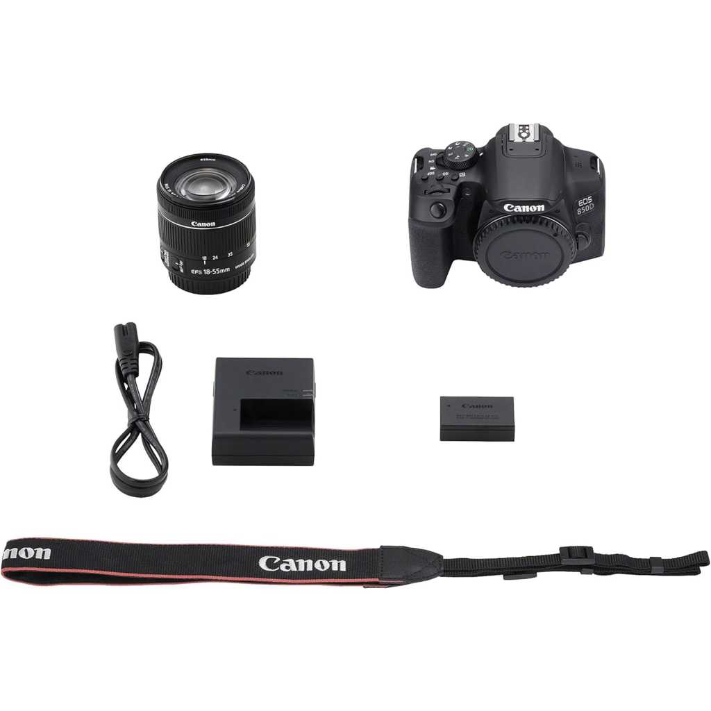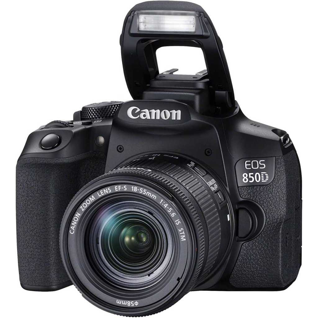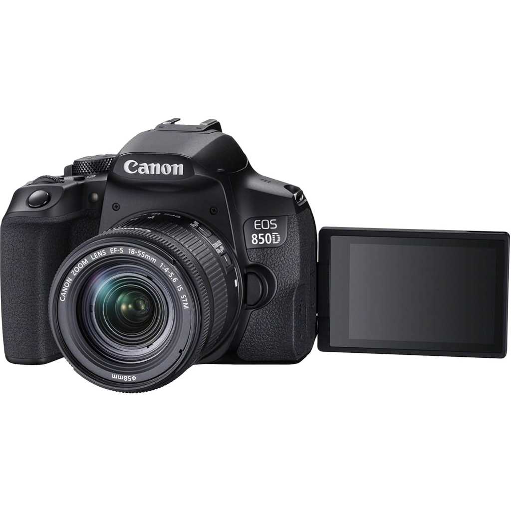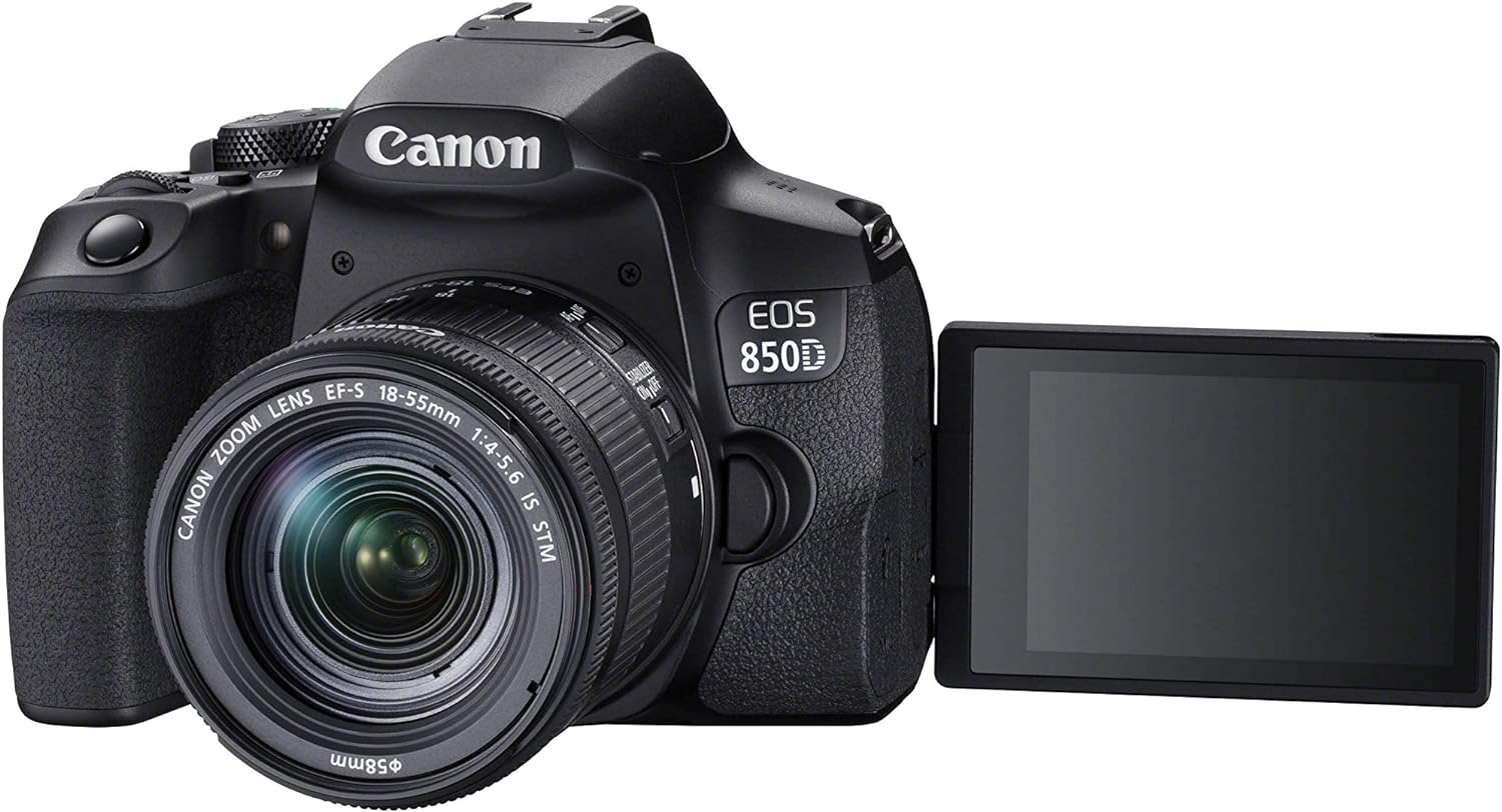 Canon EOS 850D (Rebel T8i) + EF-S 18-55mm f/4-5.6 IS STM, DSLR Digital Camera – Black.
