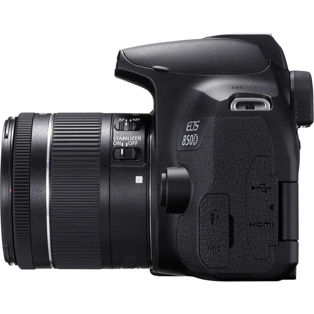 Key Features: Canon EOS 850D (Rebel T8i) + EF-S 18-55mm f/4-5.6 IS STM, DSLR Digital Camera – Black. Optical Viewfinder with a 45-point All Cross-type AF System* with Face Detection. High Image Quality with 24.1 Megapixel CMOS (APS-C) Sensor. High-Speed Continuous Shooting of up to 7.0 fps. 4K 25p along with Vertical Video. Turn your VIXIA camcorder into a high-quality webcam using its clean HDMI output.