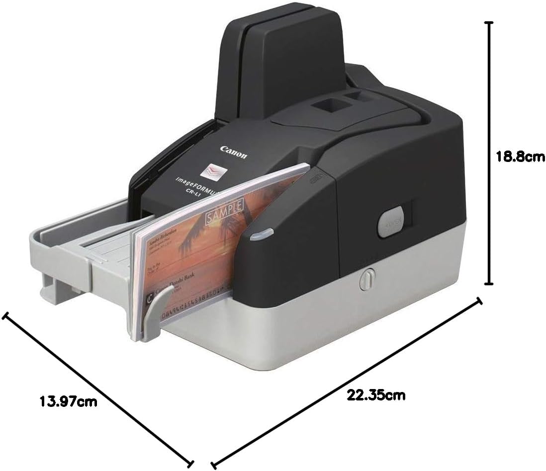 Key Features: imageFORMULA CR L1 / CR-L1 UV Ultra-compact cheque scanner with high performance and reliability Ultra-compact cheque scanner with high performance and reliability Scan up to 45 cheques per minute in black and white/grayscale, or 20 in colour, for great productivity. UV model available and optional receipt printer. Increase productivity while saving on space with minimal, modern design. MICR reading A Canon patented magnetic head reads MICR data with high accuracy for reduced transaction errors