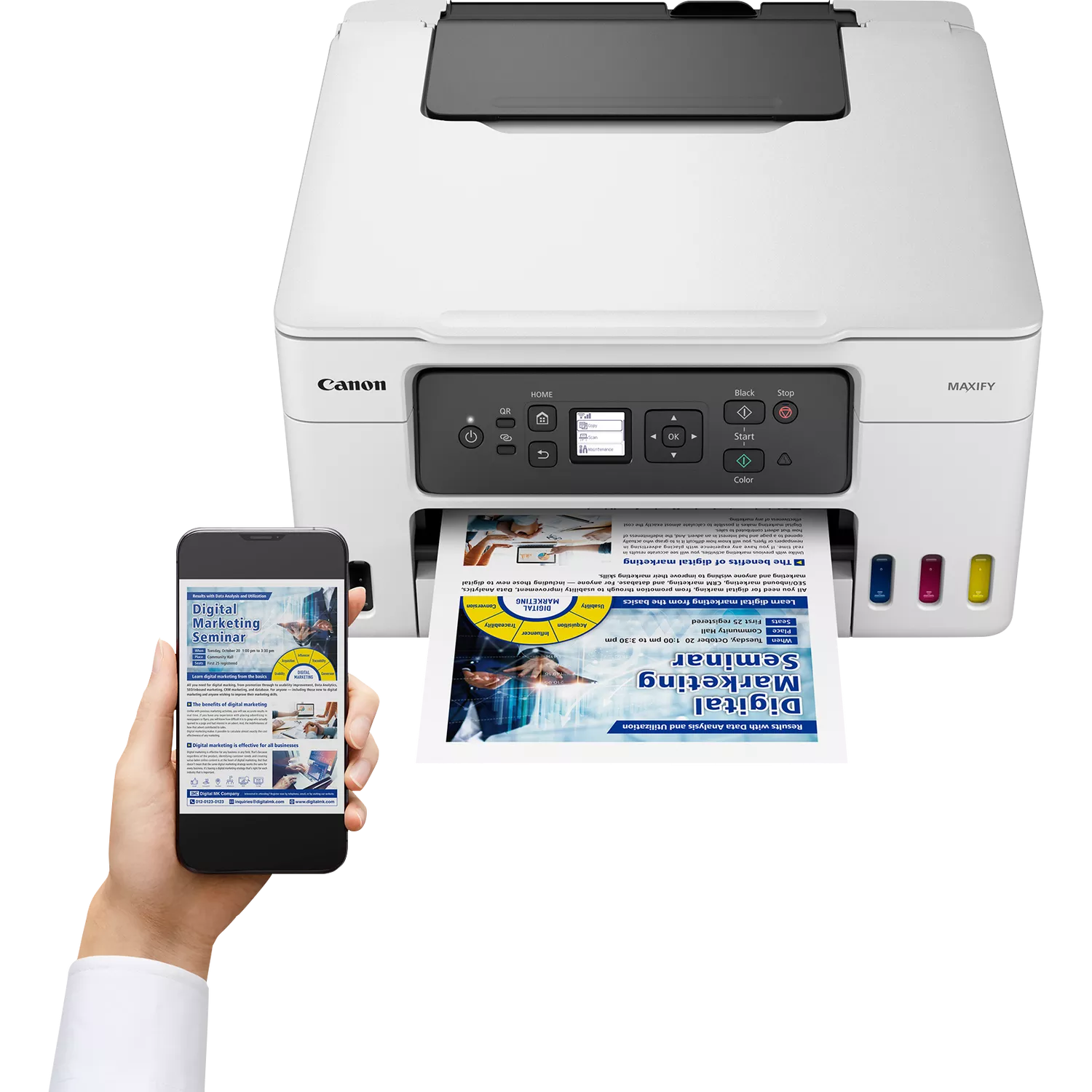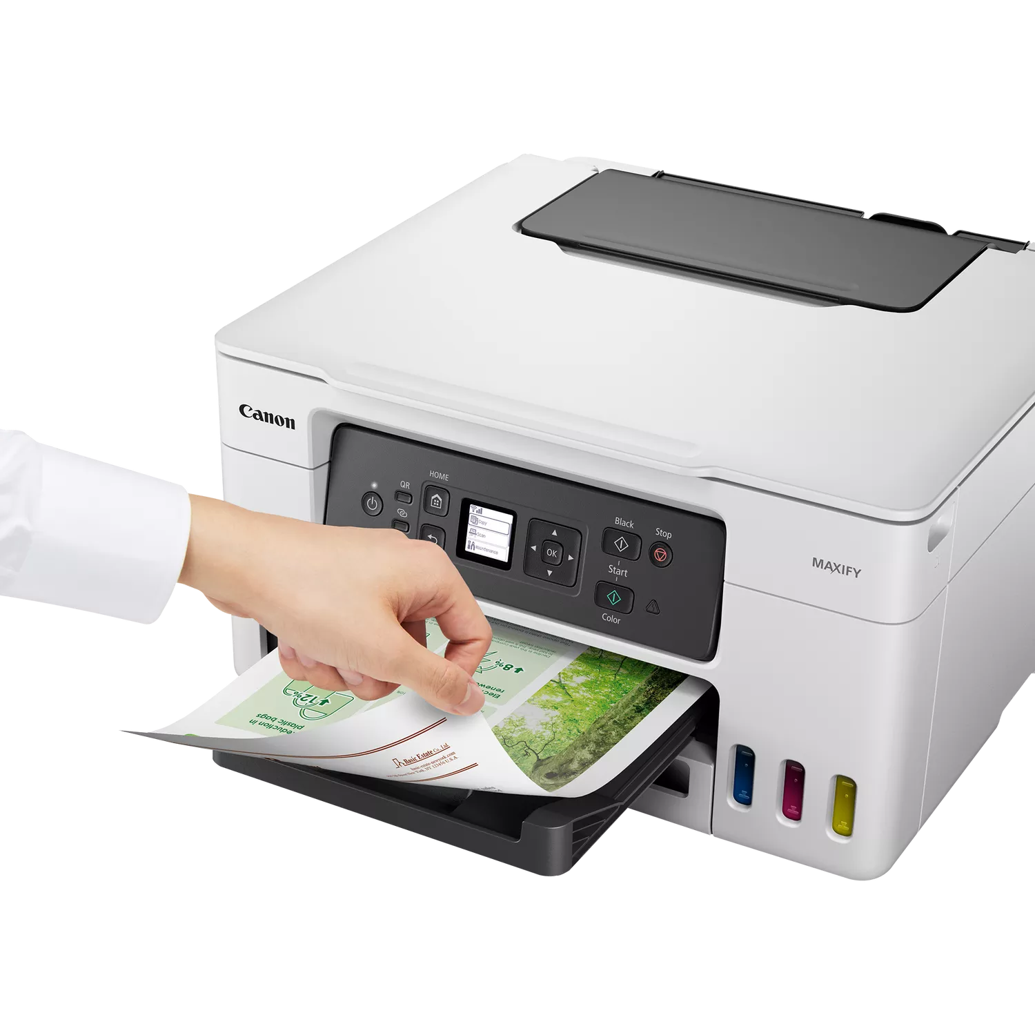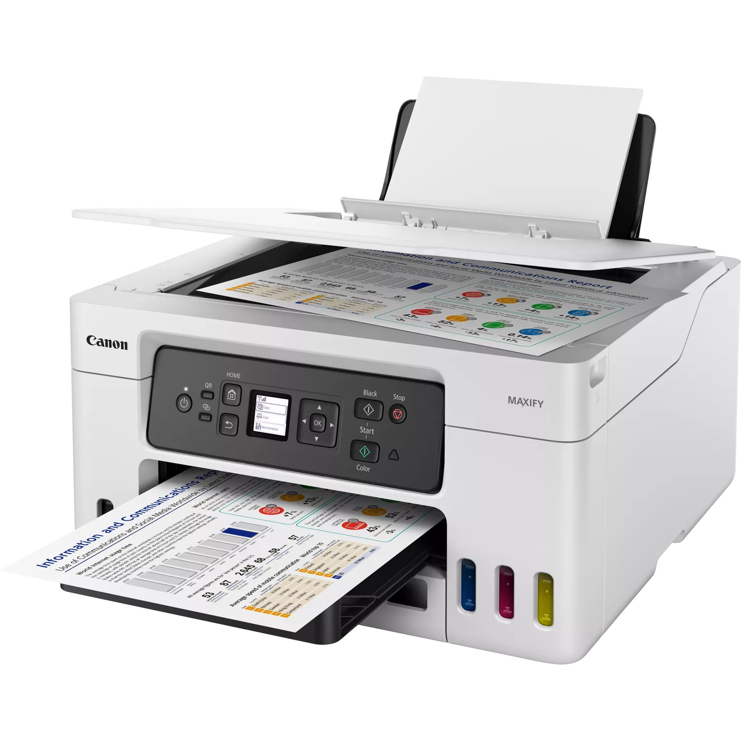 Thanks to its large tanks and affordable high-yield bottles, the MAXIFY GX3040 printer with refillable ink is amazingly efficient to run. Enjoy huge savings on the total cost of ownership¹ and cost per page² while printing high-quality business documents quickly and in high volumes. And, thanks to its compact size and simple self-maintenance, it’s the perfect home office printer for hybrid and small business workers.