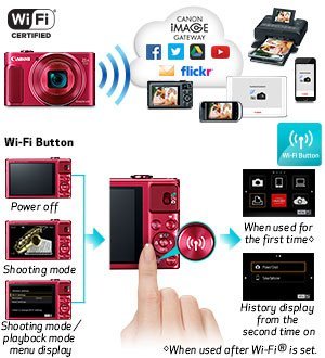 Key Features: Powerful 25x Optical Zoom with Intelligent IS helps optimize image stabilization for virtually shake free images Built in Wi Fi and NFC allows for easy sharing and transferring of images and videos. Maximum f/number : f/3.2 f/6.6. Shutter Speed 1 1/2000 second 15 1/2000 second (in all shooting modes) 20.2 Megapixel CMOS sensor with DIGIC 4+ Image Processor helps deliver stunning image quality even in low light. Auto zoom dependent on number of subjects Capture spectacular 1080p Full HD video. Focusing Range : 1 centimeter (0.4 Inches) infinity (W), 1.0 meter (3.3feet) infinity (T) Large 3.0 inch (approximately 922,000 dots) LCD allows easy viewing even from a wide angle. Battery life: Approx. 295 shots, Eco Mode: Approx. 405 shots, Playback Mode: Approx. 360 minute Image Recording Format: Superfine / Fine Effective ISO 80 3200