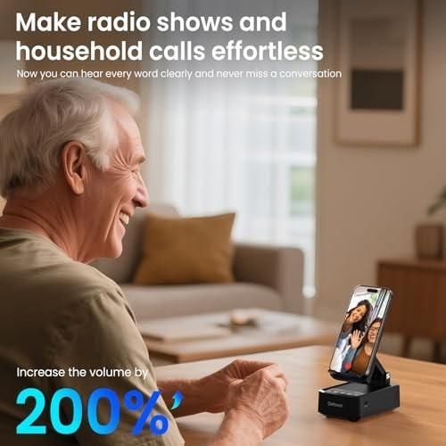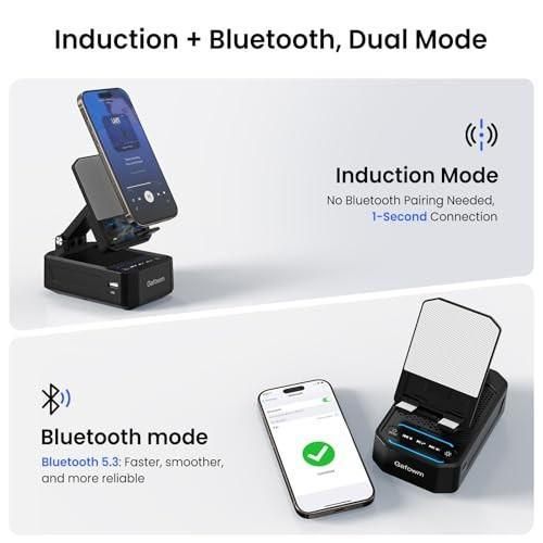 Key Features: 4-in-1 Multi-functional Design: combines a wireless induction speaker, Bluetooth speaker, cell phone holder, and 2000mAh emergency power supply for the ultimate in convenience, simplifying your desk, bedroom, or outdoor setup without taking up too much space, making it perfect for work, play, and emergencies. Instant induction play – No pairing required: This wireless induction speaker requires no Bluetooth pairing in induction mode. Simply place your phone vertically on the stand and within 1 second, the audio will start playing and amplify the sound by 200% (twice the volume). Perfect for seniors, the hearing impaired, and anyone who values ease of use to quickly listen to music or play a program while cooking, working, or relaxing. Enhanced Bass & Clarity, Dual Modes: Experience richer, deeper sound like never before compared to standard phone speakers. Dual-mode flexibility: Quickly boost audio using Induction Mode, or connect via Bluetooth for a premium, stable listening experience. Makes a great tech gift for your husband or any man. Portable & foldable: A mobile phone stand with Bluetooth speaker can be adjusted to multiple angles to meet your different viewing needs, so you can easily enjoy music, watch videos, and use TikTok. The stand can be easily folded into your handbag, making it an ideal companion for your travels and business trips. Perfect Gift for Men, Women & All Ages: This induction speaker for iPhone and Android phones is loved by men, women, fathers, wives, husbands, and seniors as a birthday gift, Christmas gift, adult white elephant gift, Mother’s Day gift, Father’s Day gift, Valentine’s Day gift for any of your loved ones. Wide range of compatibility: Induction mode, the device is compatible with most 4-8in smartphones, Bluetooth mode, the device is compatible with 4-13in smartphones, tablets, and e-readers. in addition, the device is equipped with a USB port to provide power to your phone in case of emergency.