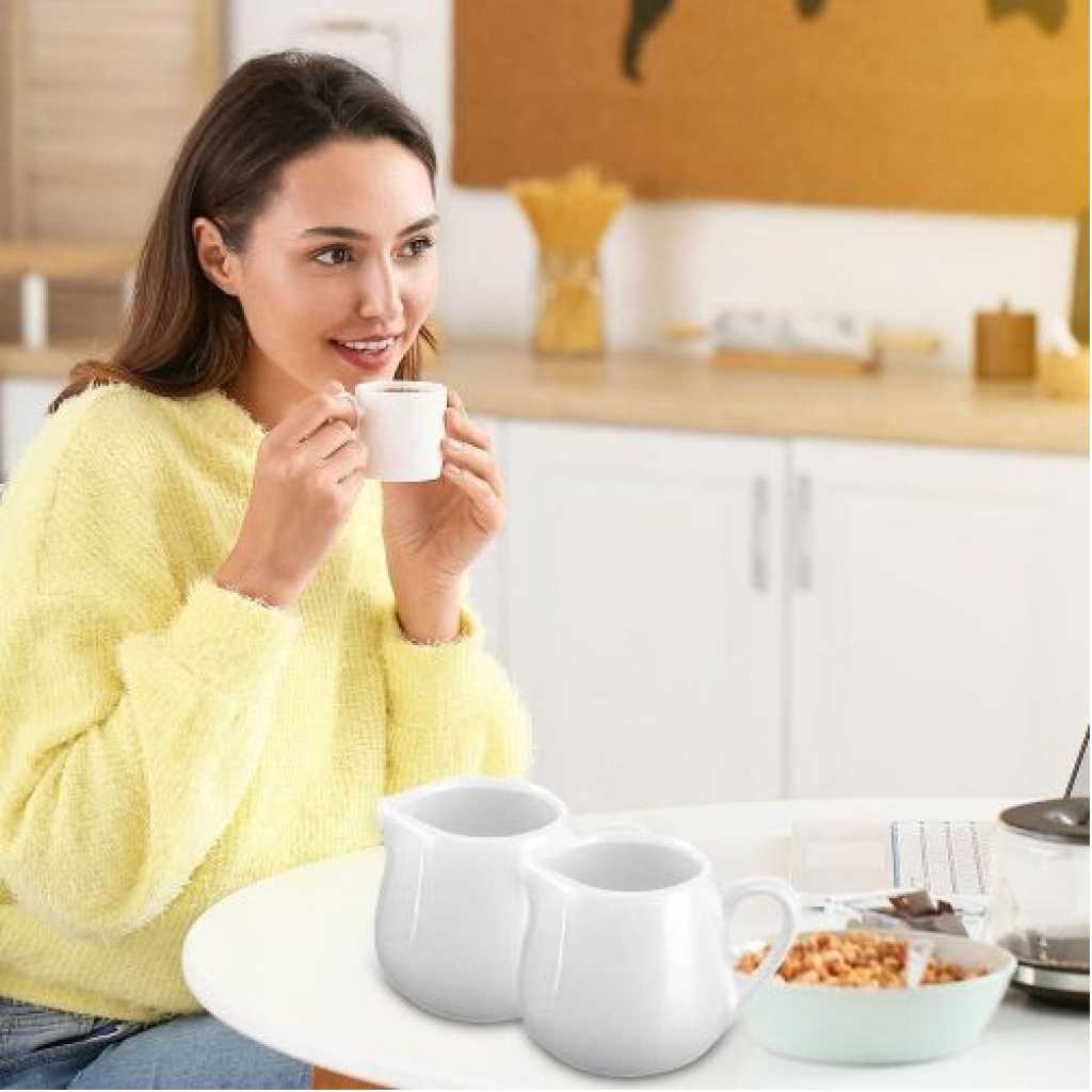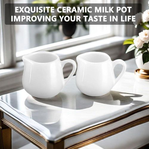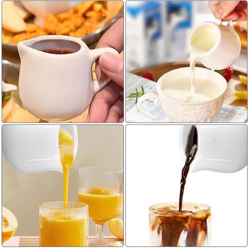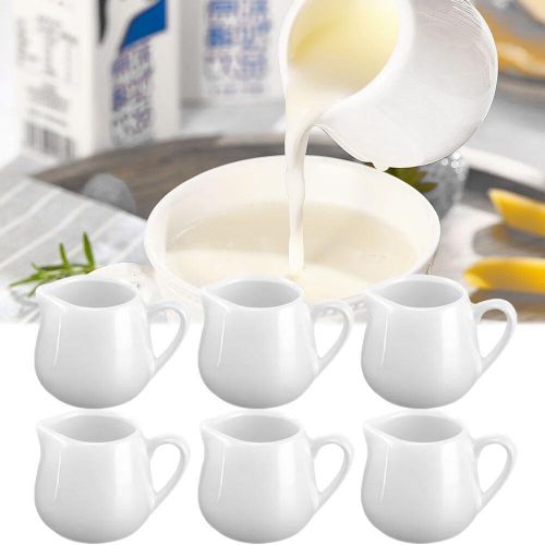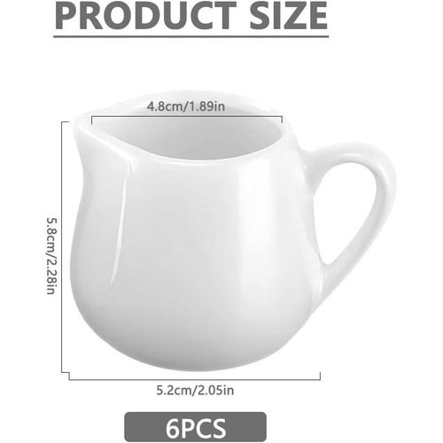 Key Features: ????【Set Contents】 You will receive 6pcs white ceramic milk jug small, the size of each one is 5.2*5.8cm/2.04*2.28 inches, the capacity is 110 ml/3.7 oz, the sufficient quantity and capacity is enough to meet your various needs. ????【High-Quality Ceramic】The white ceramic milk jug small is made of high quality ceramic, non-toxic and odourless, high quality and durable, the tooth surface is not easy to have scratches, has a comfortable touch and is durable. The bottom of the gravy jug is flat and can be placed smoothly on any flat surface. ????【Unique Design】 The white ceramic milk jug small has a practical design spout that conveniently can prevent dripping when pouring out the creamer and keep the table tidy. The white ceramic milk jug small also comes with handles for easy pouring without burning your hands and can be poured with hot or cold liquids.