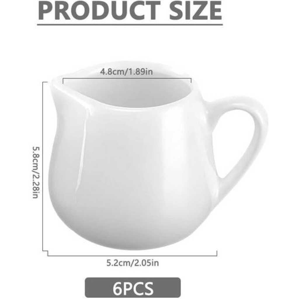 Ceramic Milk Jug Small 6 Pcs, 110ml Gravy Jug with Handle, Milk Pitcher Ceramic for Home Kitchen, Mini Creamer Jugs Serving Pitcher for Pouring Milk Coffee Sauce Gravy Custard