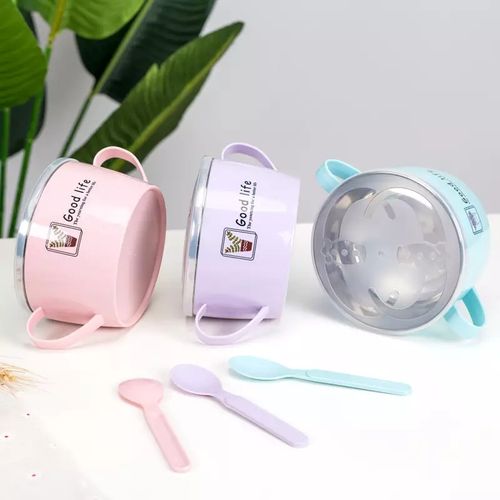 100% Safe For Your Child – The stainless steel dinnerware bowl is made of the highest quality, food grade 304 stainless steel (18/10 stainless) in South Korea. Double Lined Bowl Keeps Food Warmer / Colder Longer And Protects Little Hands – Our hard plastic outer shell insulates and keeps food the correct temperature longer and protects your precious child’s hands from extreme temperatures. MAKES MEAL TIME FUN – Our kid friendly colorful design makes meal & snack times fun. Freezer safe. Durable And Good For The Environment – Our stainless steel kids cups, bowls, plates, forks and spoons will not stain, harbor orders, rust or crack. Rid yourself and the environment of plastic and paper plates for good – opt for stainless steel. SET – Cartoon Feeding Bowl with Handles and Spoon. Specifications: Material: Polypropylene PP+304 stainless steel Size: (caliber) 13*5.5cm Suitable temperature: 0-80 degrees Package Included: 1 x Children Bowl