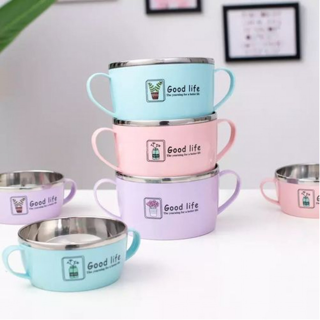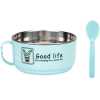 Key Features: The stainless steel bowl is made of the highest quality, food grade 304 stainless steel Double Lined Bowl Keeps Food Warmer / Colder Longer And Protects Little Hands Our hard plastic outer shell insulates and keeps food the correct temperature longer and protects your precious child’s hands from extreme temperatures. Our kid friendly colorful design makes meal & snack times fun. Freezer safe. Durable And Good For The Environment – Our stainless steel kids cups, bowls, plates, forks and spoons will not stain, harbor orders, rust or crack. Cartoon Feeding Bowl with Handles and Spoon.