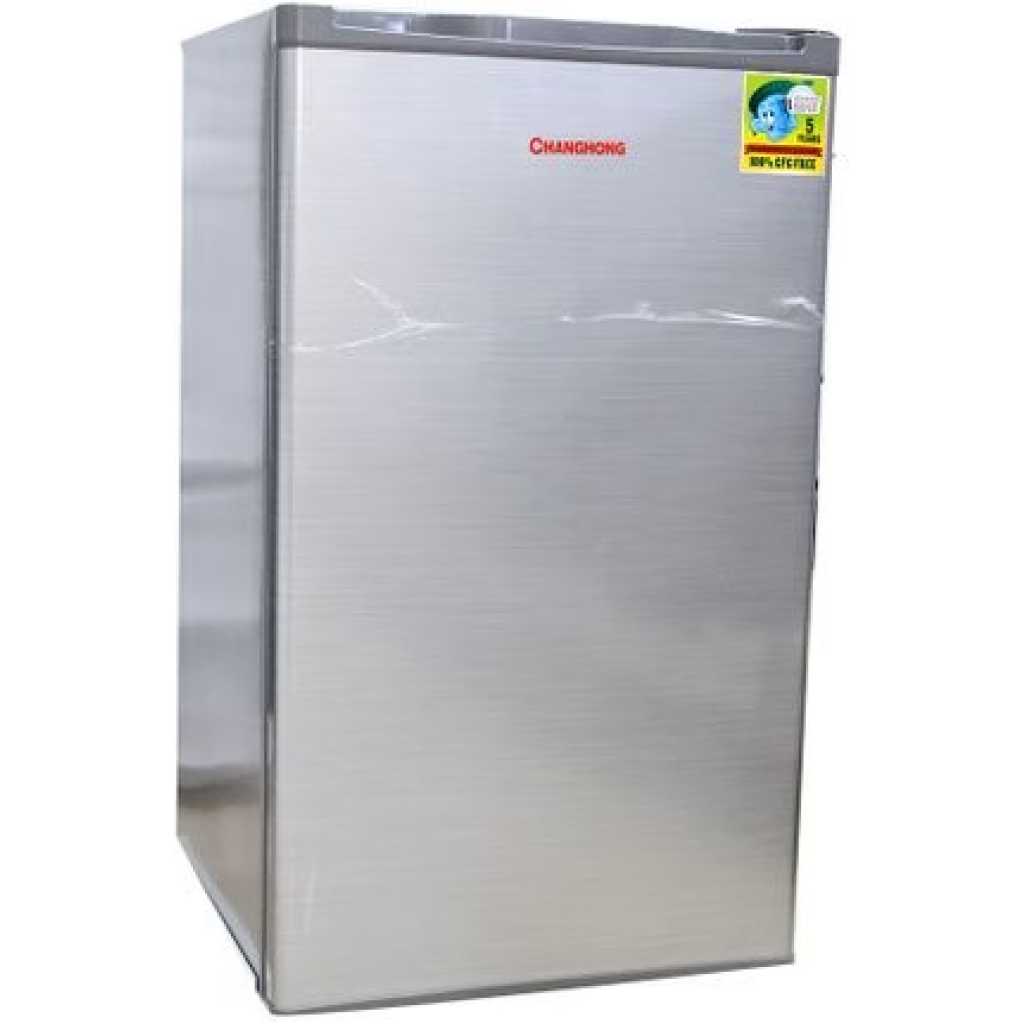 Changhong CH-120 – Single Door Refrigerator – 117 Litres – Silver Feet Energy Star compact fridge is a true space saver for places like a studio apartment, tiny house or home office. Adjustable, removable shelves allow you to customize the interior. The inside of the door is perfect to hold both bottles and cans of your favorite beverage. The freezer compartment also means you’ll have a place for your ready-to-eat frozen meal and a pint of your favorite ice cream for dessert. StorageEnjoy the additional storage provided by the custom design of the inside of the door. FreezerPerfect for when you want a ‘ready to eat’ meal on hand or to satisfy a craving. AdjustableOrganize pretty much anyway you want with shelves that are both adjustable and removable.