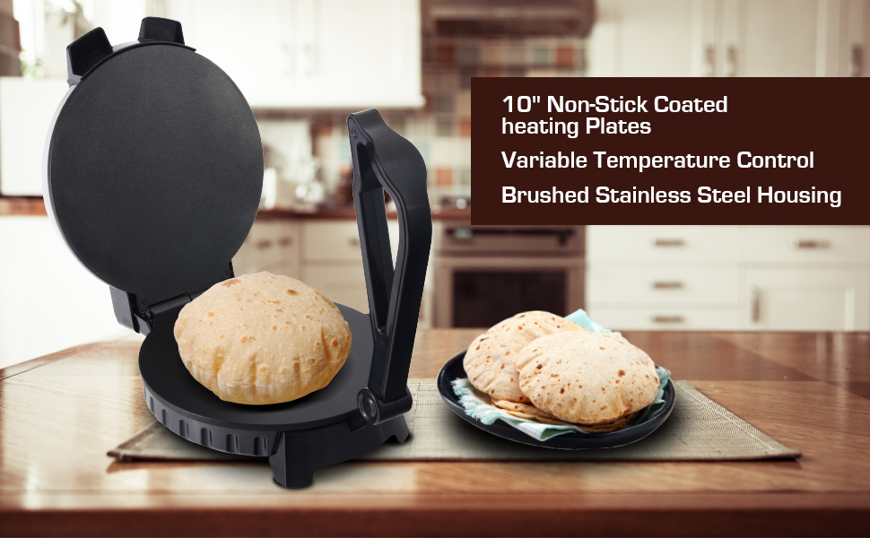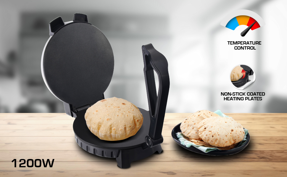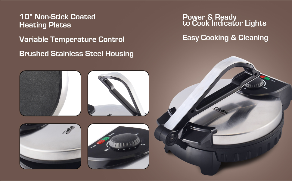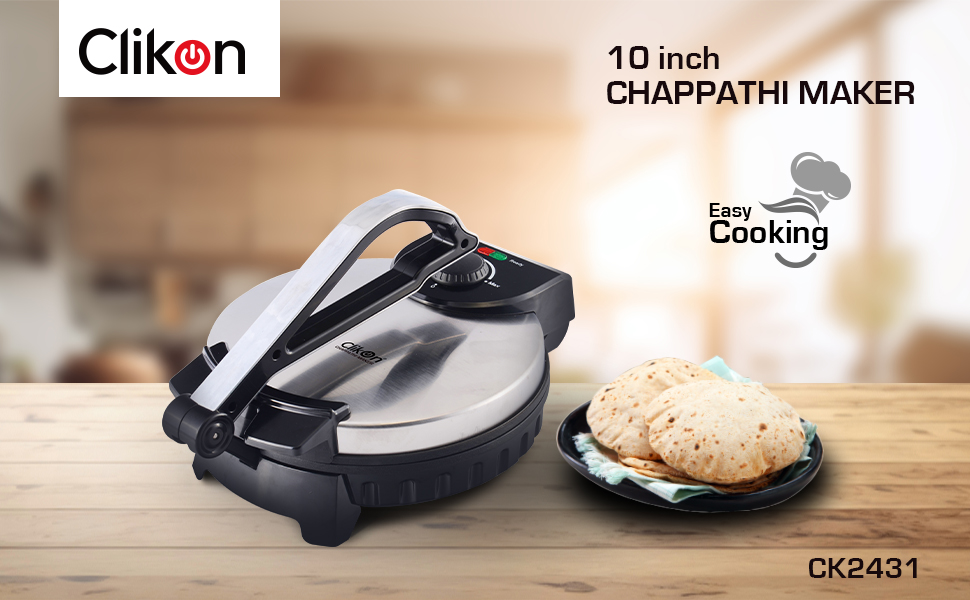Effortlessly Prepare a Variety of Flatbreads The Clikon CK2431 is designed to effortlessly prepare a variety of flatbreads, including Tortilla, Wraps, Burritos, Roti’s, and more. Its non-stick surface ensures easy cooking and removal, while the cool-touch handle ensures safe handling. The power and ready indicator lights provide clear signals, while the control dial grants precise temperature adjustments for optimal results. The CK2431 chapatti maker is an essential addition to your kitchen.