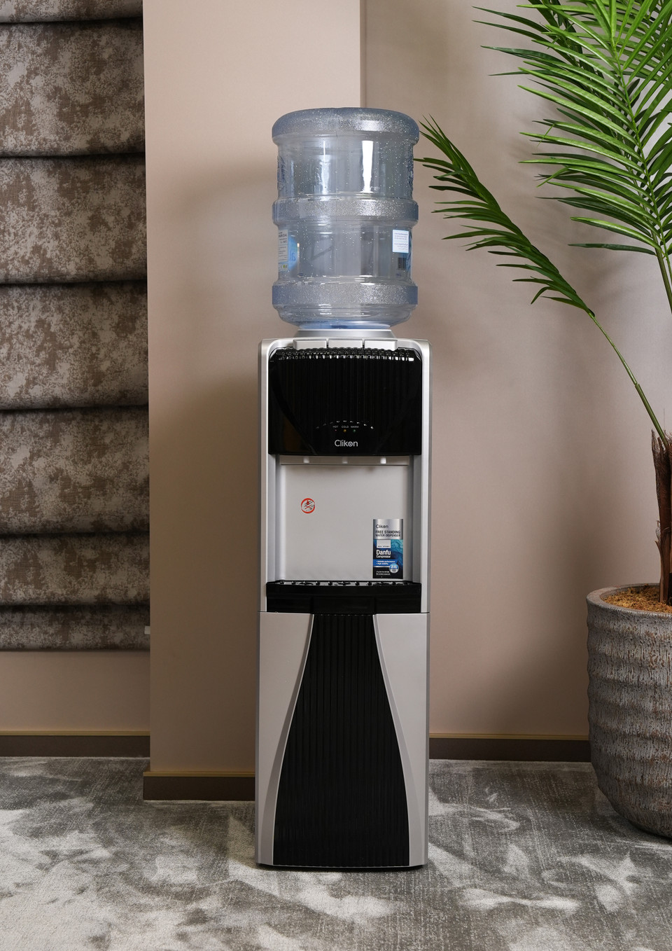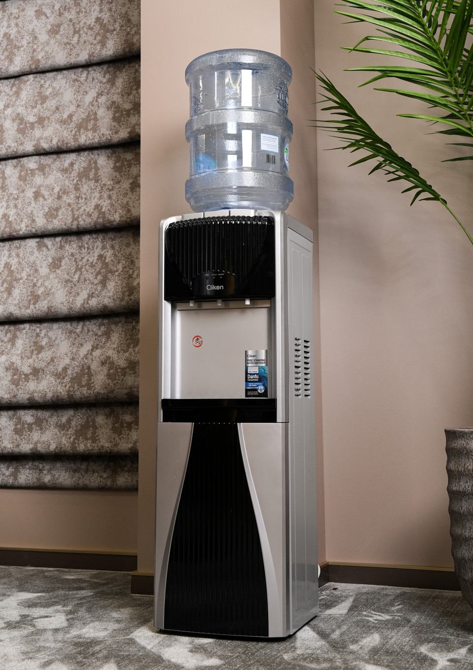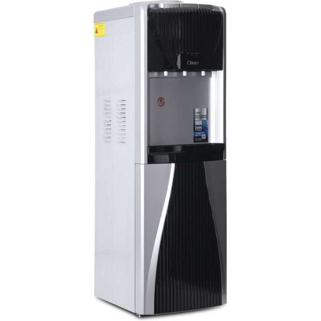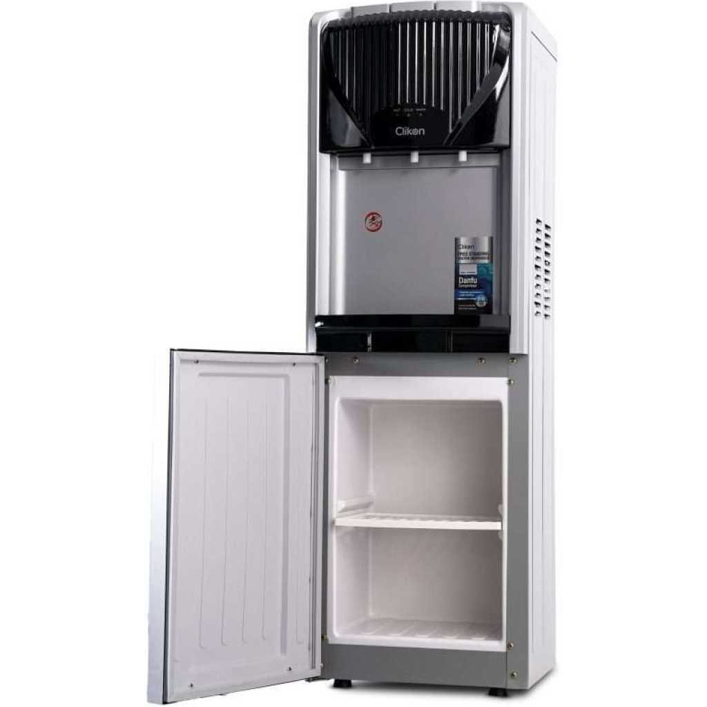 The Clikon Water Dispenser with a 3-tap design offers hot, cold, and normal water options, providing complete versatility for your hydration needs. Powered by a high-efficiency Danfu compressor using R134a refrigerant, it ensures superior cooling performance while being eco-friendly. The dispenser features a rust-proof SS 304 single stretch tank, ensuring durability and water purity for long-term use. Equipped with a child lock function for added safety and a convenient cabinet for storage, this dispenser is both practical and stylish. Operating at AC 220-240V 50/60Hz with 500W power, it delivers reliable performance with energy efficiency, making it a perfect addition to any home or office.