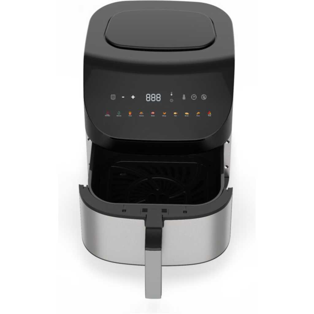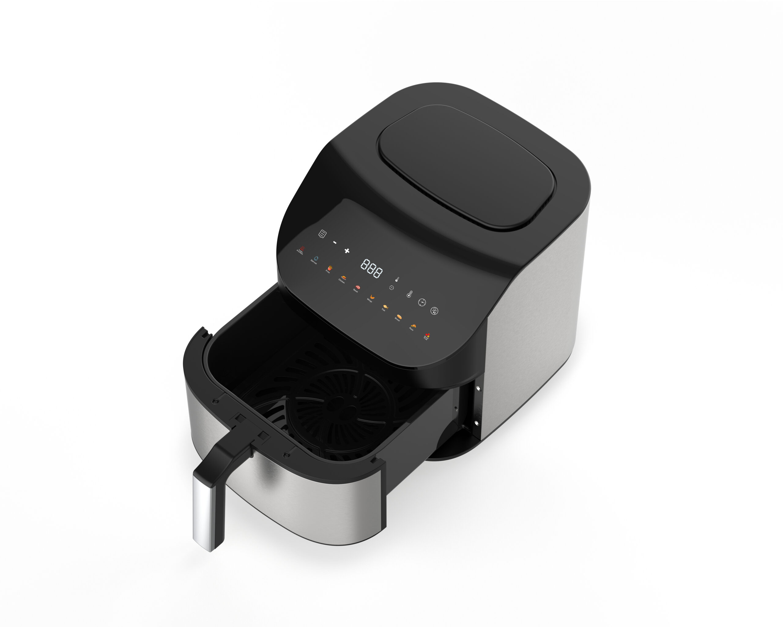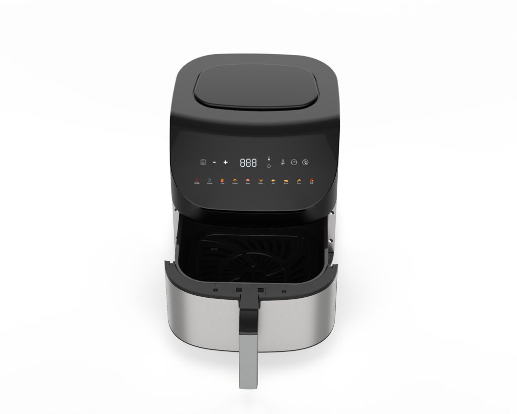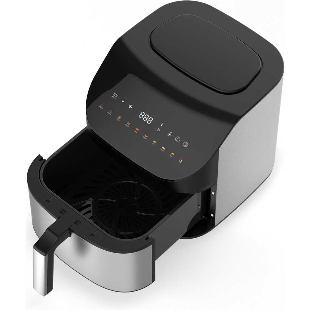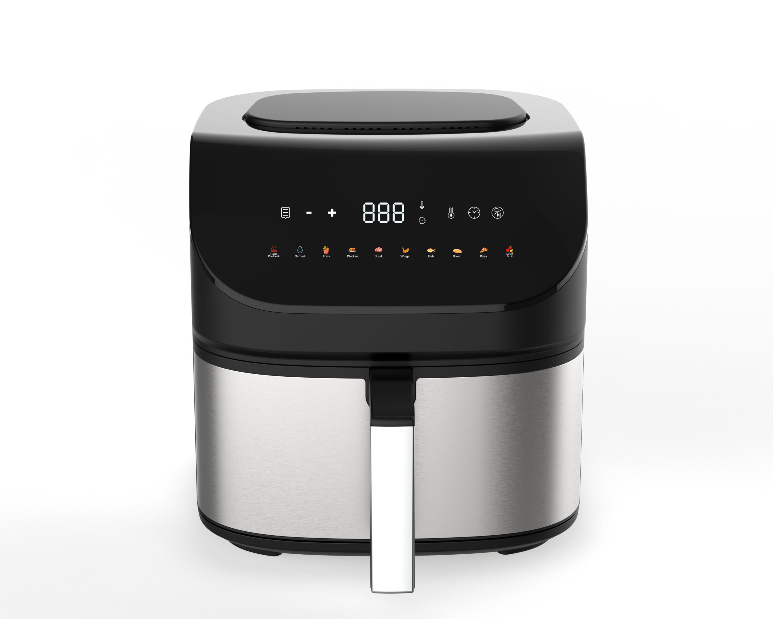 Airchef 7.0L 1600W – CK368 The Digital Air Fryer is designed for healthy, convenient, and versatile cooking, featuring a stainless-steel inner cavity and a 7L non-stick container basket that allows 0% oil cooking for guilt-free meals. Equipped with a user-friendly LED display, it operates at 1600 watts, with a 60-minute timer and overheating protection for safety. The cool-touch handle ensures easy handling, while the removable container simplifies cleaning. Its multifunctionality includes a de-frost function, turbo pre-heat, and customizable cooking settings for various dishes. Ideal for preparing favorites like fish (180°-18 min), pizza (200°-20 min), steak (180°-16 min), french fries (200°-17 min), chicken wings (180°-25 min), cake (160°-17 min), and prawns (180°-12 min), it also comes with convenient accessories like three skewers and a skewers rack, making it perfect for diverse recipes.
