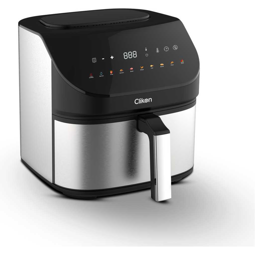 Key Features: Cool Touch Handle : The Clikon Air Fryer features a cool touch handle, ensuring safe and comfortable handling even during high-temperature cooking sessions. Overheat Protection : Equipped with advanced overheat protection, this air fryer automatically shuts off to prevent overheating, safeguarding both the appliance and your kitchen. 60 Minute Timer : Easily manage your cooking time with the convenient 60-minute timer, allowing precise control over your culinary creations. Removable Container : The air fryer includes a removable container, making it effortless to clean and maintain after each use. Stainless Steel Inter Cavity : Its stainless steel interior cavity ensures durability and even heat distribution, optimizing cooking performance. LED Display : A user-friendly LED display provides clear visibility of settings and cooking status, enhancing ease of operation. 0% Oil Healthy Cooking : Enjoy guilt-free meals with 0% oil healthy cooking, promoting healthier eating habits without compromising on taste or texture. Non-Stick 7L Container Basket : The non-stick 7-liter container basket accommodates larger quantities of food, perfect for families or entertaining guests. Multi-functional : Beyond air frying, the Clikon Air Fryer offers versatile cooking options, including baking, grilling, and roasting, all in one compact appliance.