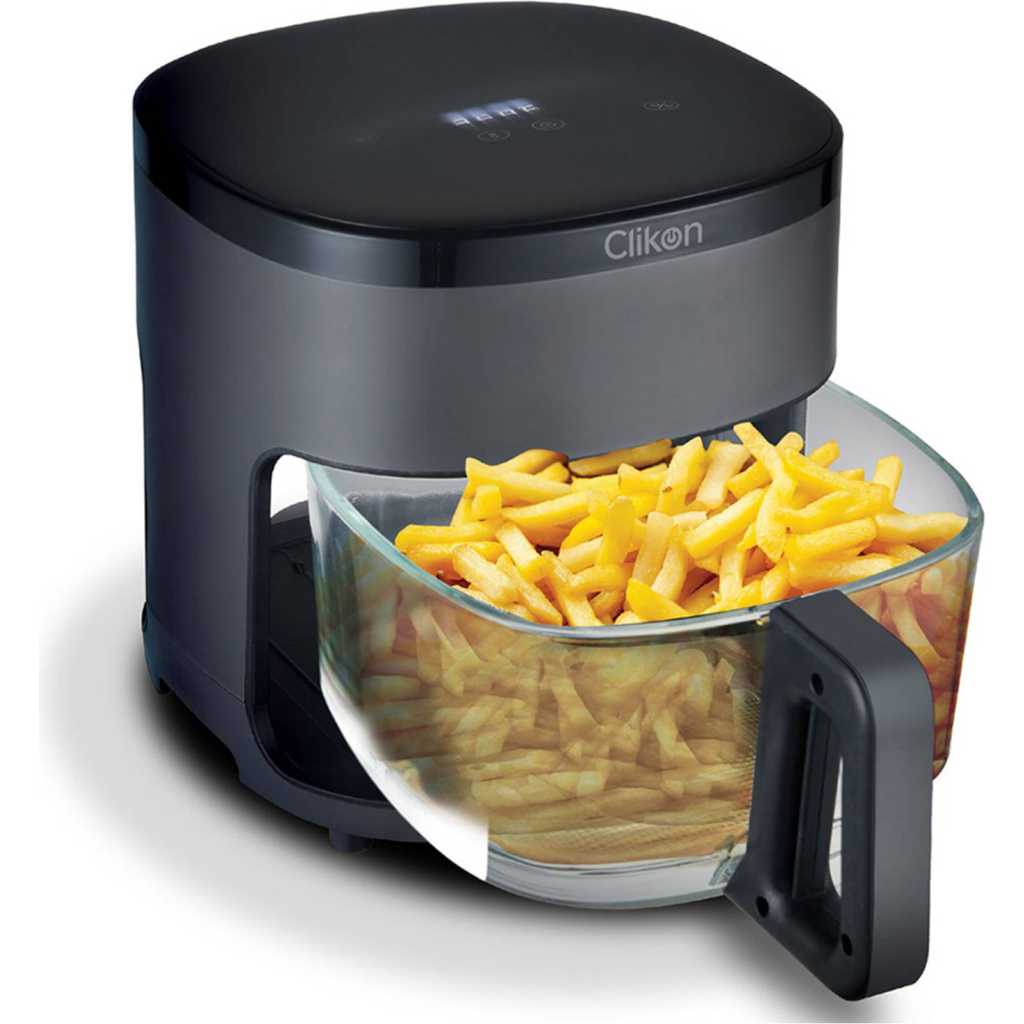 Clikon Air Fryer-4.2L 1300W – CK354 The Digital Air Fryer is a versatile and health-conscious kitchen appliance designed for 0% oil cooking, allowing you to prepare delicious and crispy dishes with minimal fat. It features a non-stick 4.2 L container basket, ensuring easy food release and hassle-free cleaning. The adjustable temperature controller and timer provide precise cooking control, enabling you to achieve the perfect results for a variety of recipes. This multifunctional air fryer is ideal for preparing an array of dishes, including cake (160° for 17 minutes), prawns (180° for 12 minutes), pizza (200° for 20 minutes), fish (180° for 18 minutes), steak (180° for 16 minutes), French fries (200° for 17 minutes), and chicken wings (180° for 25 minutes). The dishwasher-safe basket adds to its convenience, making cleanup a breeze. With its ability to handle a wide range of cooking tasks, the Digital Air Fryer is an essential tool for healthy, fast, and efficient meal preparation.