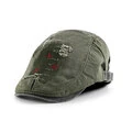 Collrown Denim Beret Hat Vintage Casual Plochý Klobouk pro Muže Vyšívaný Patchwork Stárnutý Špičatý Klobouk Venku Retro Klobouky