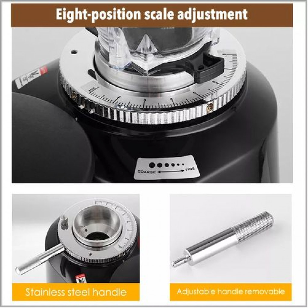 Commercial Espresso Coffee Machine Designed for quick, easy, one-touch operation, this model has an auto on/off feature and a lever-operated portafilter filling option. Simply place a portafilter underneath and pull the lever until you hear a click to grind the perfect amount of ground espresso directly into the portafilter head. The included, side-mounted tamper allows you to tamp the espresso into the portafilter. This grinder is very efficient and provides many levels of bean grinding. Whether your grinding for drip or espresso coffee this does a great job. Additionally, it doesn’t take up much counter space.” This model has 8 precision grind settings so you have complete control over the intensity of your espresso shots. Simply turn the adjustment handle and lock it into place with the set screw to designate your preferred coarseness The heavy-duty aluminum base is sturdy and strong, and has no problem keeping the unit stable during operation. Plus, it operates more quietly than competitors to reduce ambient noise in your coffee shop, restaurant, or cafe.