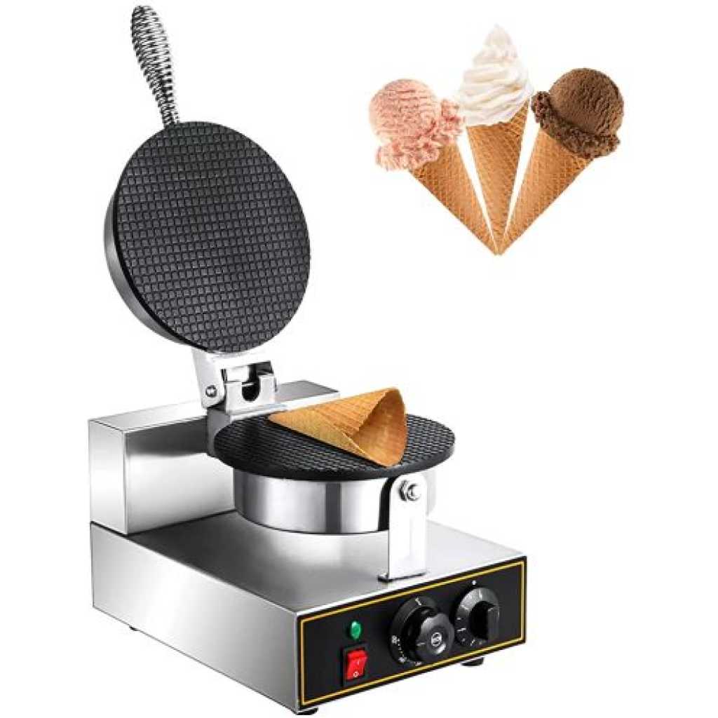 Product details is a leading brand that specializes in equipment and tools. Along with thousands of motivated employees, VEVOR is dedicated to providing our customers with tough equipment & tools at incredibly low prices. Today, VEVOR has occupied markets of more than 200 countries with 10 million plus global members. Why Choose VEVOR? 1.Tough Quality Assurance 2.Incredibly Low Prices 3.Fast & Secure Delivery 4.30-Day Free Returns 5.24/7 Professional Customer Service Product Description Commercial Ice Cream Cone Maker Our electric egg roll maker is constructed with a stainless steel body and cast-iron heating plates, featuring non-stick Teflon coating material. It is durable, sturdy, and easy to clean, with long service life. It is equipped with an internal temperature protector, which is reliable and safe. Temperature is 50-300℃ (122-572℉) adjustable, and the countdown timer setting is 0-5 minutes adjustable. With the advantages of clean, sanitation, smooth operation, and energy-saving, this professional waffle machine is ideal for both commercial and household. Stainless Steel Body The main body of the waffle bowl maker is constructed with high-quality thickened stainless steel material, with an attractive appearance. Durable, sturdy, and easy to clean. Parallel Heating Plates This ice cream cone maker comes with parallel heating plates, which are made of cast-iron. Three layers of non-stick Teflon coating surface prevent waffles from burning and make them easy to cook. Temp & Time Control The independent temperature controlling system is convenient to operate, with one temperature knob (50-300℃) and a timer knob (0-5 minutes) for precise control. Comfortable Handle The detachable handle of our ice cream waffle cone maker is made of stainless steel with a stylish spiral-designed appearance, which effectively prevents the handle from overheating. Stability & Reliability This Belgian waffle maker commercial is equipped with four rubber feet for enhanced stability during operation; The stainless steel bracket attached with two heating plates facilitates the free opening and closing. Multi-Functional Waffle Maker Our electric egg roll maker fits for the production of various crepes, such as egg roll, pizza, tortillas, pancakes, potato pies, ice cream cones, and so on. It is widely used in restaurants, cafeterias, etc. Specifications Rated Power: 1,000 W Plate Size: φ7.9″ (φ200 mm) Temperature: 50-300℃ (122-572℉) Timer Range: 0-5 minutes Gross Weight: 16.53 lbs (7.5 kg) Product Dimensions: 12.6″x9.8″x20.8″ (320x250x530 mm) Package Content 1 x Ice Cream Cone Maker 1 x Cone Forming Tool 1 x User Manual 【HEAVY-DUTY STAINLESS STEEL】- Our commercial waffle cone maker is solid, easy to clean, and reliable, due to the heavy-duty stainless steel material. With its high-quality stainless steel body, you can be assured that this cone waffle machine will be working for you for many years to come. 【PARALLEL HEATING】- The waffle cone maker machine adopts two heavy-duty cast-iron heating plates (7.9-inch in diameter). The parallel heating design enables both sides of the cone waffles to be heated evenly. The Teflon-coated, non-stick plates allow easy removal of waffle cones for quick and easy cleanup. 【PRECISE TEMP & TIME CONTROL】- The digital programmable controls with a countdown timer (0-5 minutes) ensure efficient and convenient operation. Our cone waffle maker is also fitted with a unique knob for precise control of temperature (50-300℃), featuring an indicator for showing the working status. 【WELL-DESIGNED DETAILS】- Slipping, overheating, and accidental burns are preventable due to the spiral design of stainless steel handle. Four rubber feet attached to the bottom of the ice cream cone maker facilitate enhanced stability. The bracket connected with two heating plates can support flexible closing and opening. It comes with a waffle cone forming tool for swift cone shaping. 【MULTI-PURPOSE WAFFLE CONE MAKER】- Due to its crisp texture, the waffle cones made by our ice cream waffle cone maker, go well with the creamy and soft ice cream of any flavors. It is widely used in organizations, schools, restaurants, cafeteria processing departments, and individual restaurants, making all kinds of egg rolls.