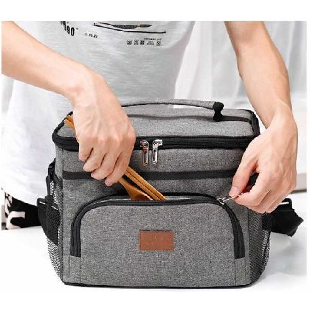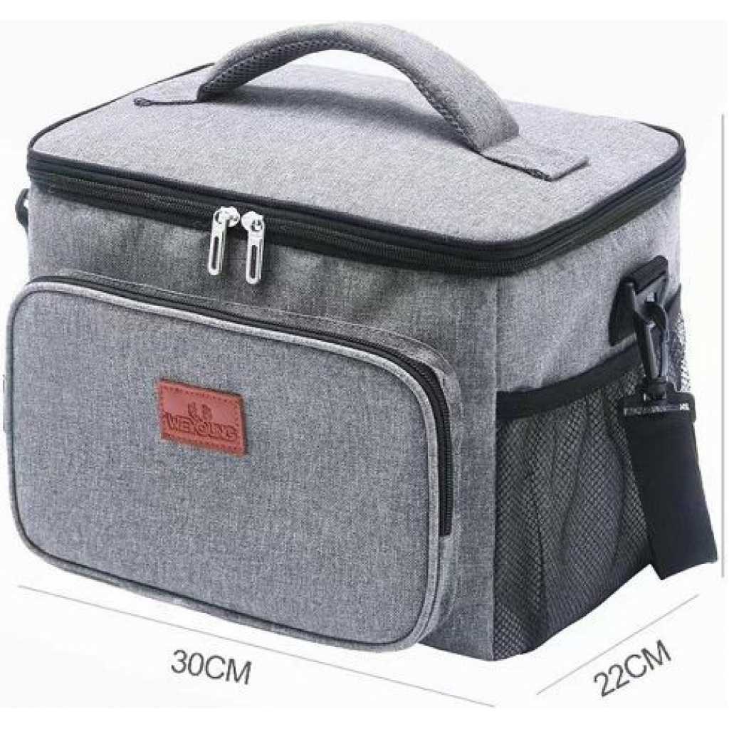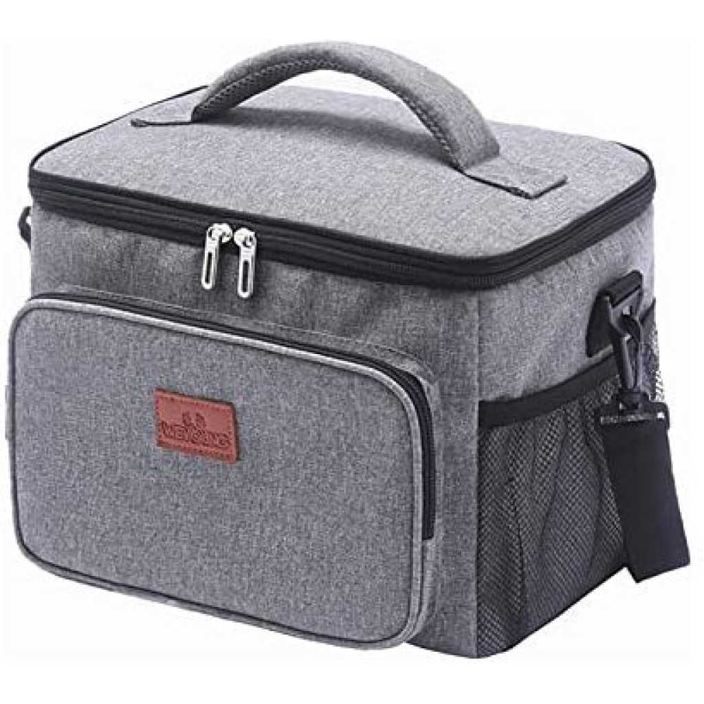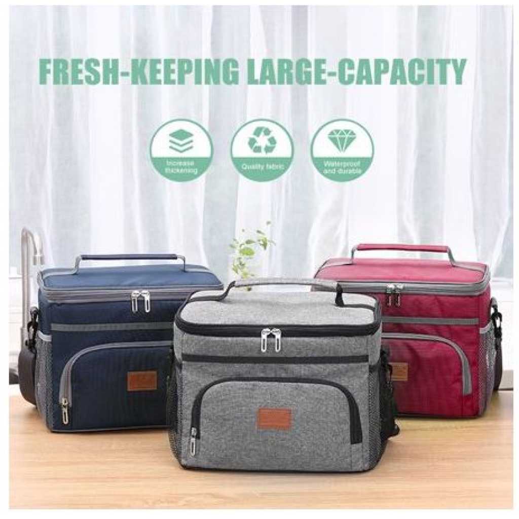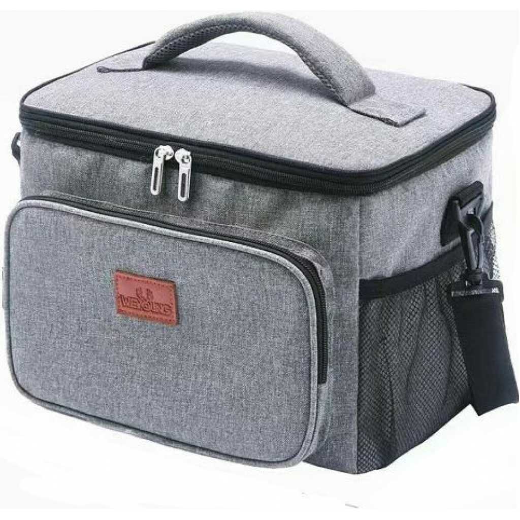 Compact Insulated Lunch Bag For Food Flask Containers – Multi-colour. Insulated Lunch Bag for Women, Men & Kids Whether you are a nurse, working adult, flight attendant, or student, our thermal lunch box helps keep your meals cool or warm for the long hours you need! Long-Hour Lunch Coolers for Work Built with 5mm EPE foam and PEVA polyester lining for up to 8 hours of cooler storage. The polyester lining also prevents leakage from your ice pack condensation and is great for easy clean-ups. Lockable Lunch Box, No Stolen Lunches! Lockable zippers! You can put a small lock or keychain on your lunch bag. Now your lunch boxes are kept safe from lunch thieves! Lunch Bag with Side Pockets Most competitors use elastic bands. We choose to use drawstring closure. Because it makes your lunch cooler’s bottle holder adjustable and durable. Our right pocket also has fabric with slight insulation so your can drink keeps cool longer. Multiple Storage Zipper Lunch Bag We’ve created multiple pockets because we know you want an insulated organizer. Zippered mesh pocket: You and your kids are kept safe from flying utensils when opening your lunch bag Inner pocket: For your ice packs, snacks, or tissue Exterior pockets: For ID cards, wallets,s or phone Large Capacity & Versatile Use Fits up to 12 canned drinks and still has space for more! The sturdy handle and shoulder strap are great for work, office, and even picnic!