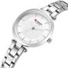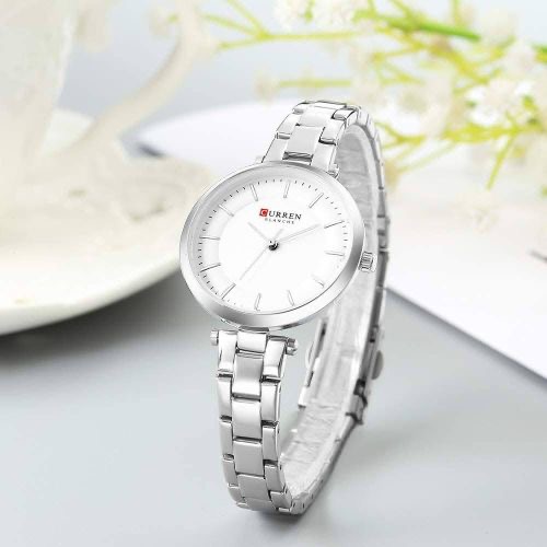 It’s curren women’s luxury designer watch. This watch is stainless steel and water resistant. It is analog and displays date. The watch is quartz and has a round stainless steel face. Key Features: Brand Curren Stainless steel Analog Dated