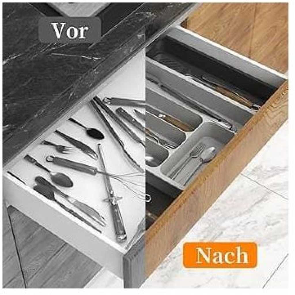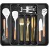 Key Features: 【6 Dedicated Slots】 With six thoughtfully designed slots, this kitchen utensil organizer offers ample space to neatly arrange a variety of kitchen tools, keeping your culinary essentials easily accessible and well-organized 【Non-Slip Design】 Our silverware drawer organizer tray features non-slip surfaces on each compartment, ensuring your utensils stay securely in place and protecting your silverware from any potential damage caused by shifting within the drawer 【High-Quality and Easy to Clean】 Crafted from premium materials, our kitchen drawer organizer inserts are built to withstand daily use, ensuring long-lasting durability. The rounded corners allow you to reach every nook and cranny with ease, making cleaning a hassle-free experience