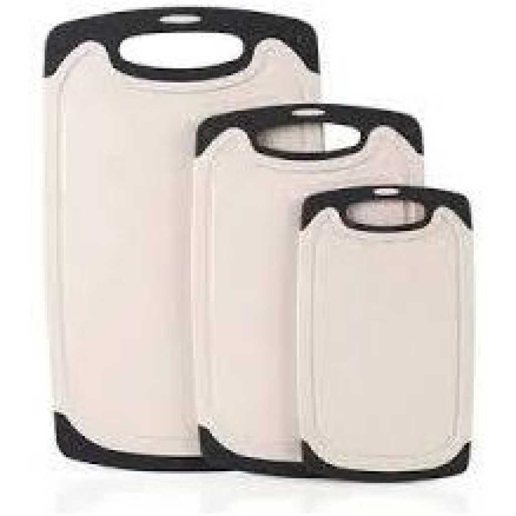 Key Features: Premium quality: high-quality plastic with LFGB certifications. The chopping board set of 3 is made of excellent environmentally friendly PP plastic, it is completely free from harmful substances and does not smell of plastic. Perfect for cutting foods such as fruits, vegetables, cheese and meat. It is better than wood or bamboo as no bacteria can get into the material. PERFECT SET – Three sizes for every kind of cooking! You’ll get one large, one medium, and one small cutting board in your set. Perfect for multi-course meals or all-day meal prep. – PREP FRIENDLY DESIGN – Chopping board set includes juice grooves that prevent liquid from spilling on the counter for a kitchen safe, drip-free experience. – EASY TO CLEAN. Dishwasher safe and won’t splinter, crack, or peel. Ideal home for prepping and cooking! – Dishwasher Safe – Non-Slip Handle – Reversible – Lightweight – Plastic Chopping Board Set – Cutting Board with Juice Grooves – Fruit Cutting Board
