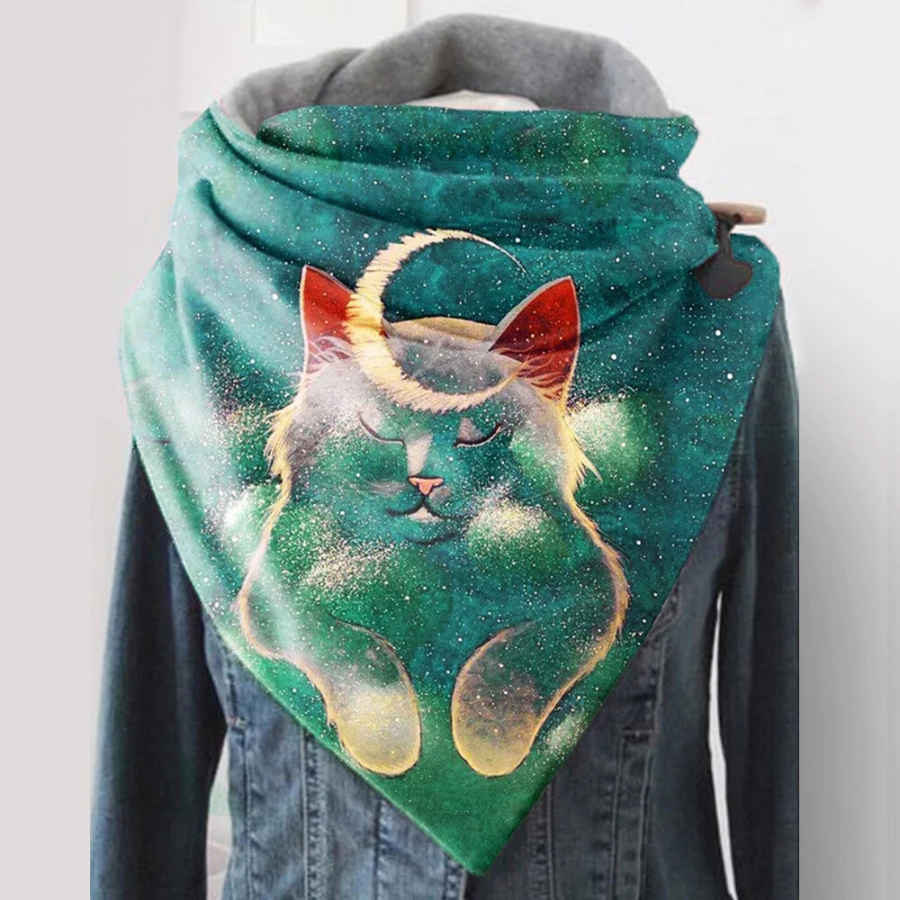 Pouze US$16.79, nakupujte Dámský pěkný, tlustý, měkký šátek s potiskem chrání krk proti chladu a přináší teplo, motiv kočky a měsíce na Banggood.com. Nakupujte módní scarf & shawl & square online.