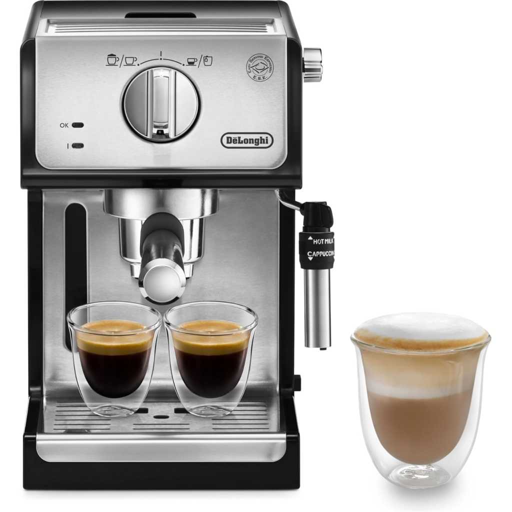 De'Longhi Traditional Barista Pump Espresso Machine, Coffee and Cappuccino Maker with Adjustable Milk Frother, Compatible with E.S.E Pods, 1.1L Removable Water Tank, Black - ECP35.31