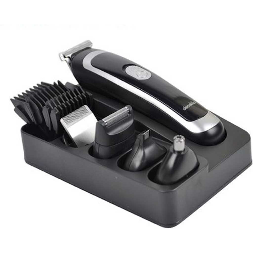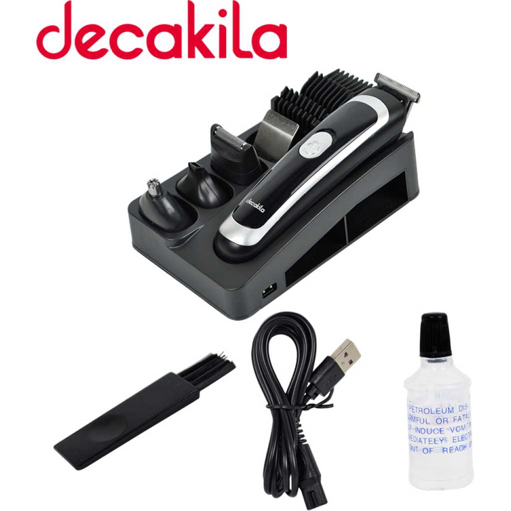 Key Features: Grooming set(5 in 1) 600mAh NI-MH Battery 8 hours charging time 45 minutes working time 5in1 design with changeable accessories Wet and dry use IPX5 waterproof Voltage:120V/60Hz With 1pcs 30mm hair clipper With 1pcs 38mm hair clipper With 1pcs 28mm foil shaver With 1pcs nose trimmer With 1pcs detail trimmer With 1pcs clean brush With 4pcs combs Comb length:3,6,9,12mm Size:162*42*38mm
