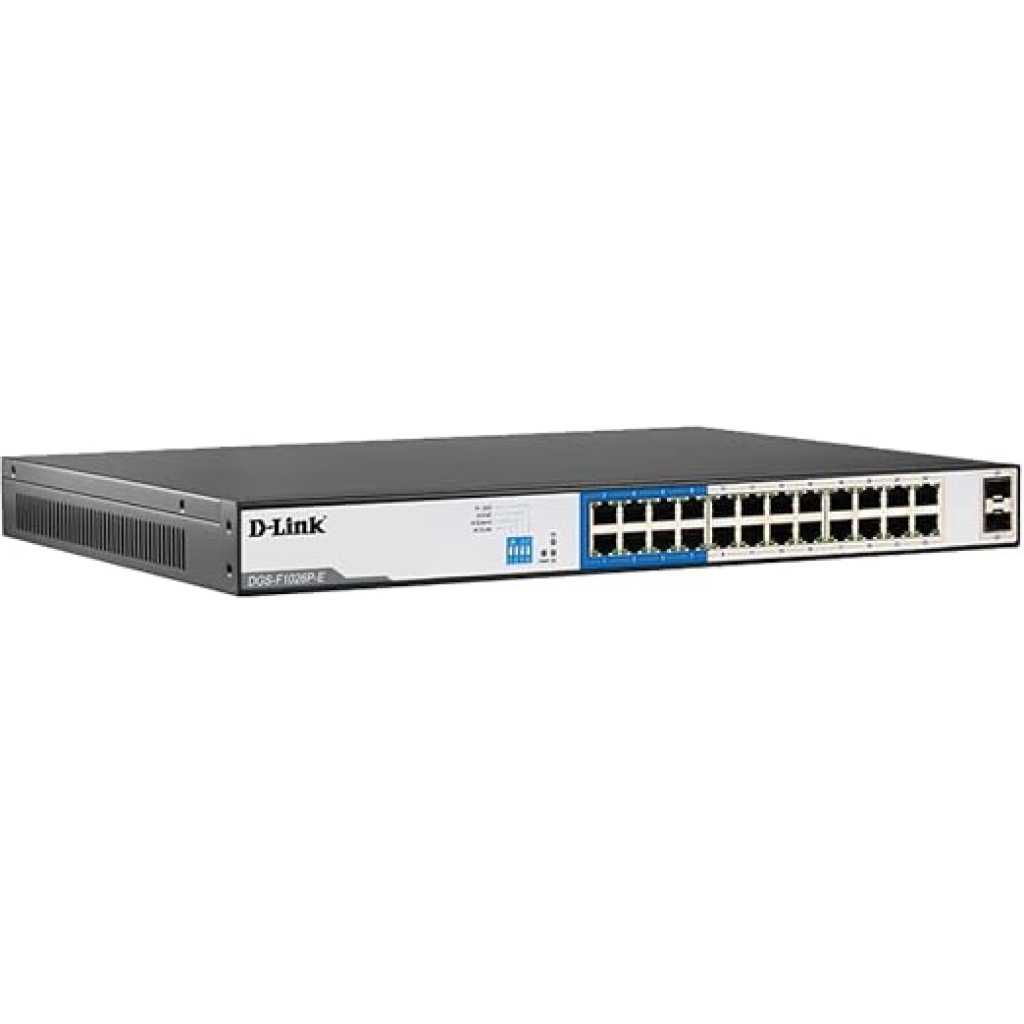 Key Features: DGS-F1026P-E 24GE PoE + 2 SFP Ports 250m PoE Switch, 250Watts Power over Ethernet, High Performance Networking Product, Compact and Silent 24 10/100/1000 Mbps gigabit ethernet ports 2 SFP port 250watts available PoE Flow control for protection against loss data Maximum distance of 250m Light protection (6kV) Operating Temperature: 0 to 40 deg C (32 to 104 deg F)