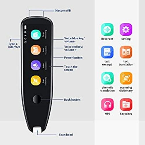Key Features: Scanning&Translation: This scanning pen can scan text and translate the scanned text instantly.It has 98% accurate recognition rate and efficient scanning speed, just slide your handheld scanning pen across a line of printed text and watch it appear instantly on your screen. Intelligente AI TranslatorDevice: It is not only a scanning pen, it has all the functions of a translator, supporting 112 languages online voice translation, 112 languages recording translation, 55 languages scanning translation, and offline scanning translation in Chinese, English, and Japan. Tested by over 5000 users, this language translator’s translation accuracy reaches 98%. Text Excerpt: It allows you to Scan the Text, Story, or full article and transfer text to PC or Mac, directly via USB or from the 8GB storage, with no additional software required. Newly designed Intelligent recording feature functions as a digital recorder. You can record and save all your Lectures and presentation audio without missing any important words. Multifunctional Pen Scanner: This Scanner can be used as an MP3 player to connect your Bluetooth, earphone, and type C port. The 1500mah makes 8 hours voice translation and 210 hours device standby true. The user can use it for long time. This scan translation pen enhances the travel experience, it helps you overcome cross-language barriers, like hotels to stay, attractions to visit and so on while traveling overseas. Just enjoy it in anywhere. Light & Portable -portable design with the same size as a pen. 3.5inch large touch screen display with eye-protective UI design. Full angle recognition. Covered by Alloy Rear Shell: high-quality materials designed to maximum-optimize user experience. High-fidelity speaker.