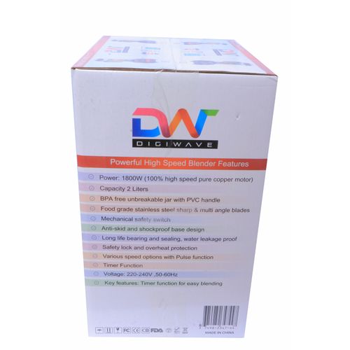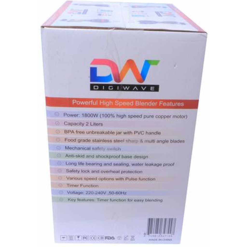 Key Features: Digiwave DWBL – 1111T 2.0L High-Speed Commercial Blender – Red. Power: 1800W. BPA Free Un Breakable Jar With Handle. Capacity 2Litres. Food Grade-Stainless Steel Sharp and Multi Angle Blade. Long-Life Bearing and Sealing.