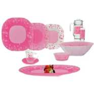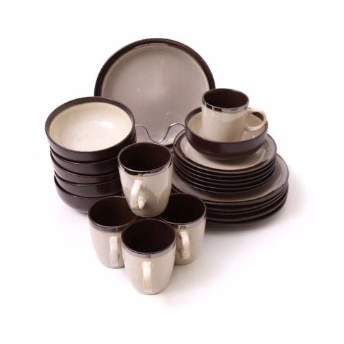 Key Features: Six10.5″ (26.7 cm) dinner plates Six 8.5″ (21.6 cm) salad plates Six 6.25″ (15.9 cm) bowls Six 12 oz mugs The Porcelain round dinnerware is microwave and oven safe to 450 degrees Dishwasher safe for easy cleanup 100 percent Porcelain