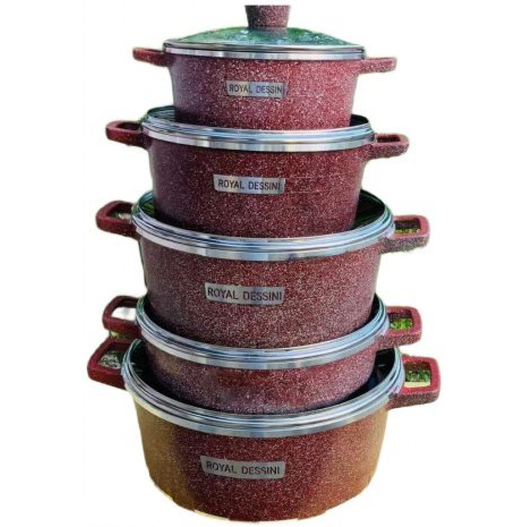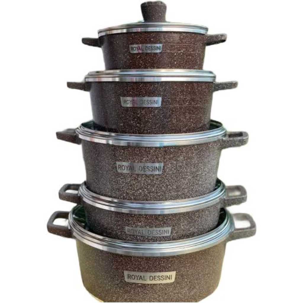 Key Features: 10 Piece Soup Pots Premium Die-Cast Aluminium Body Oven safe, Dishwasher safe, PFOA FREE Durable Non-Stick Coating Sturdy Tempered Glass Lids with Steam Vent Moulded Side Handles